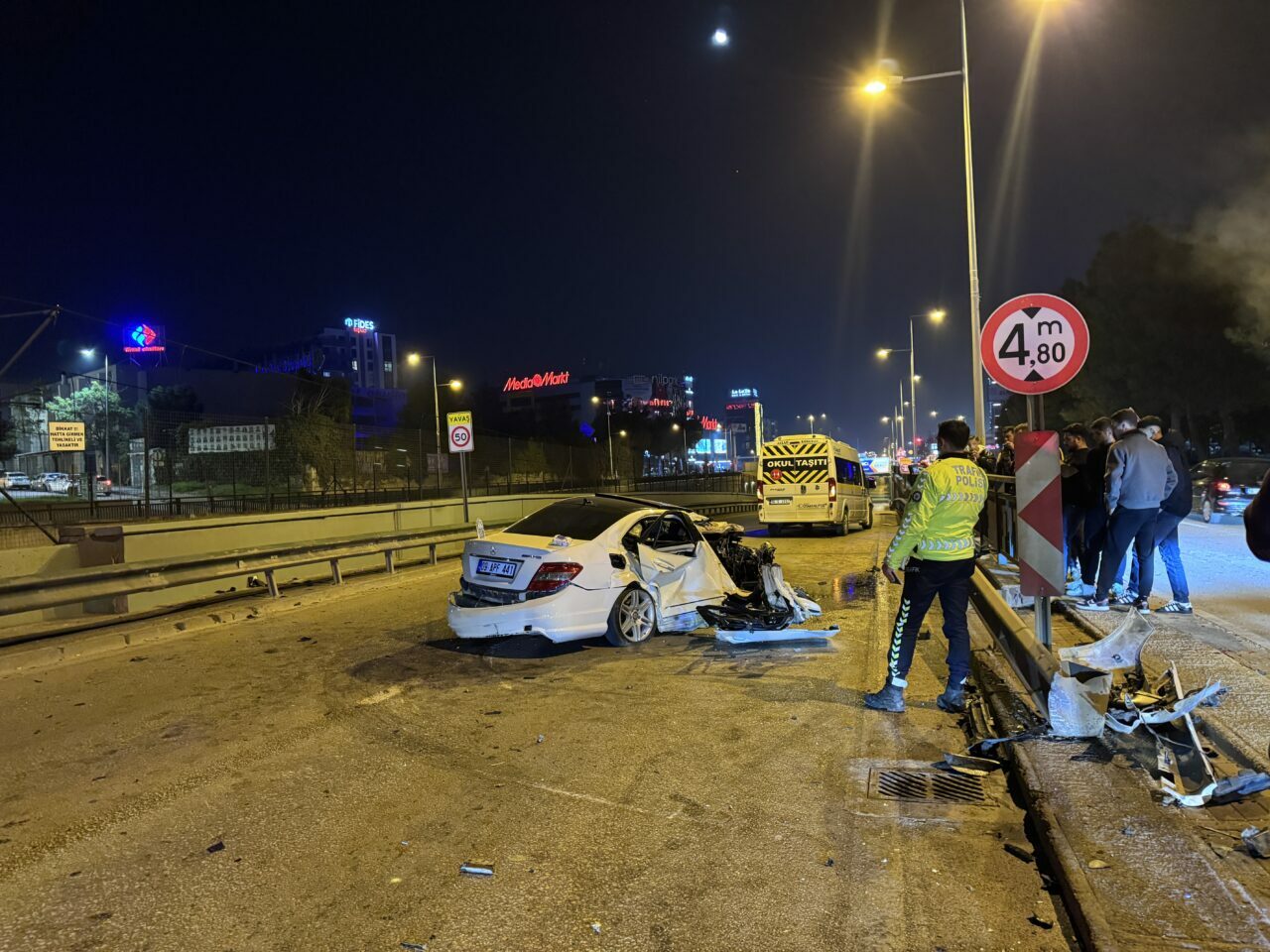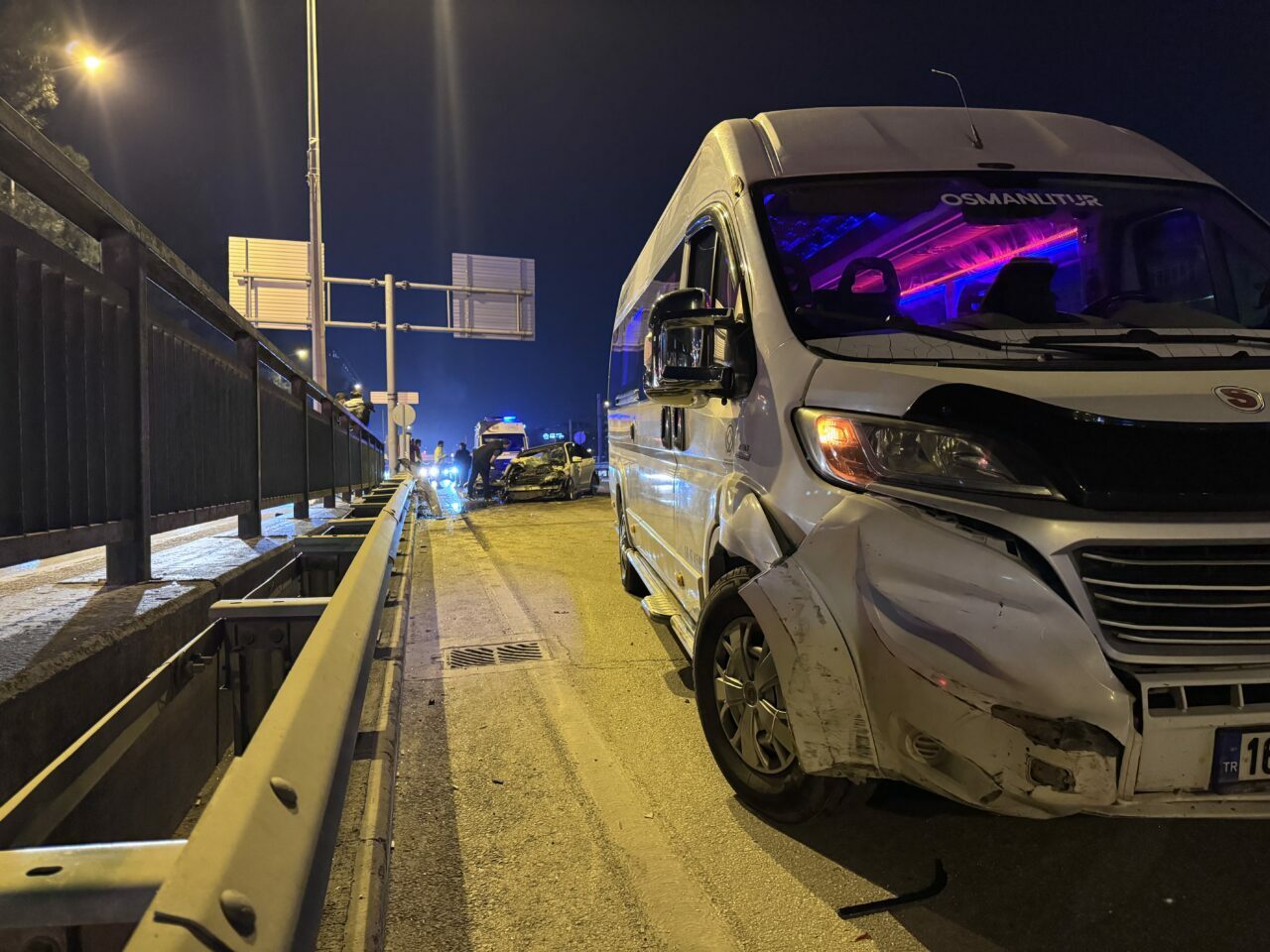 Berat D. yönetimindeki 09 APF 441 plakalı otomobil, sürücüsünün direksiyon hakimiyetini yitirmesi sonucu önce yön tabelası direğine, ardından da Mustafa K. idaresindeki 16 S 4592 plakalı servis minibüsüne çarptı.
