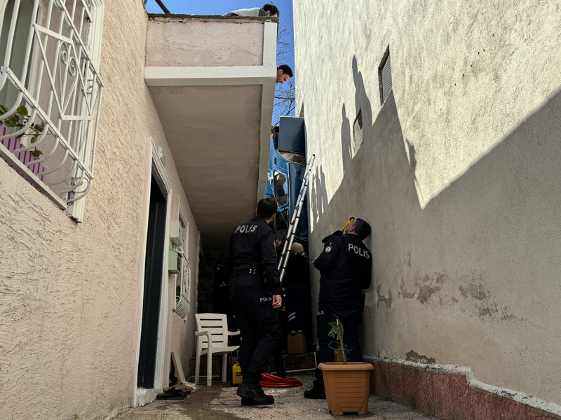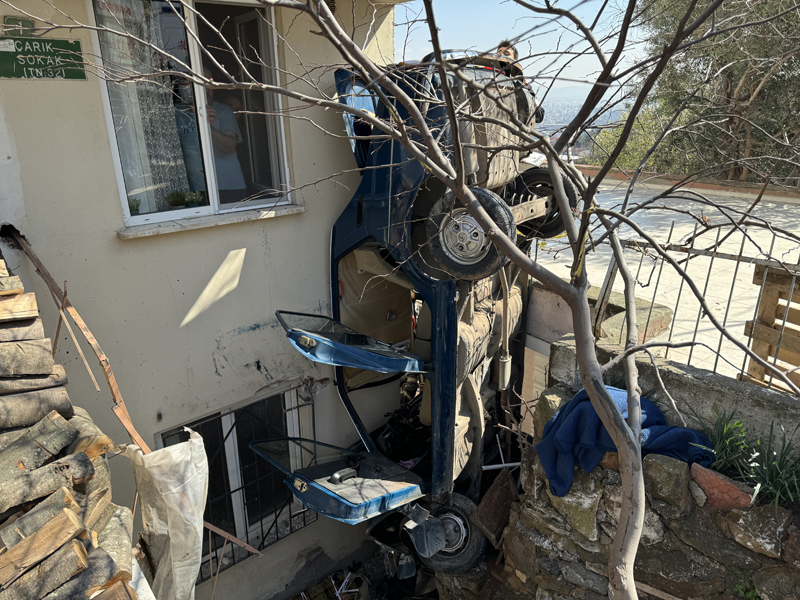Araç, 3. Dağ Sokak ile Çayır Sokak kesişiminde bulunan iki bina arasındaki dar boşlukta dik şekilde asılı kaldı. Sürücü ise araçta sıkışarak yaralandı.
