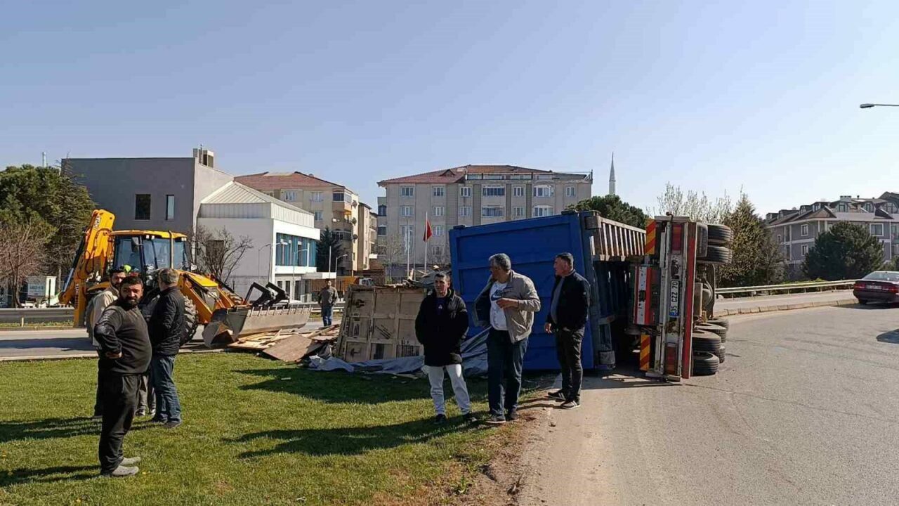Bursa’dan gelip İnegöl’e dönüş yapmakta olan Cengiz K. (44) yönetimindeki 35 CZZ 70 plakalı ahşap palet yüklü kamyon, sürücüsünün kontrolünden çıkarak devrildi. Devrilen kamyonun sürücüsü yaralanırken, kamyon dorsesindeki paketler yola saçıldı. Yaralı sürücü kaza yerine sevk edilen Ambulansla İnegöl Devlet Hastanesine kaldırıldı.