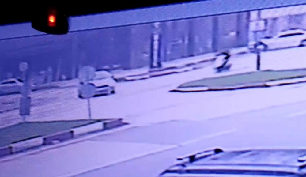 Kaza anı bir işyeri güvenlik kameralarına saniye saniye yansıdı.