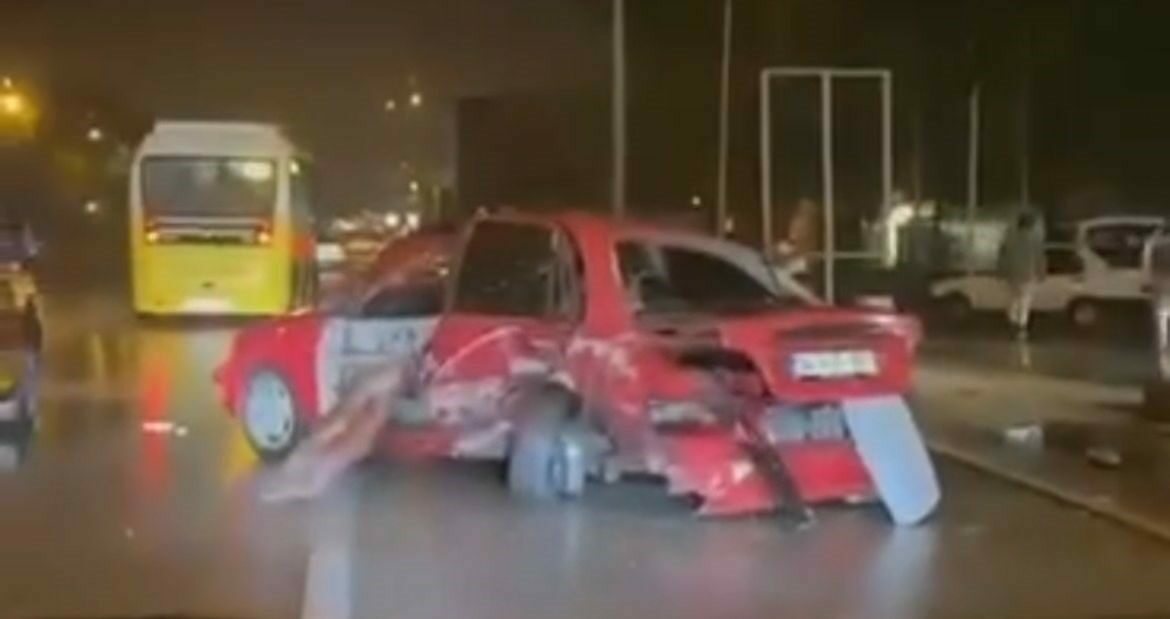 Yaralı sürücü, olay yerinde yapılan ilk müdahalenin ardından hastaneye kaldırıldı. Kaza anı saniye saniye güvenlik kamerasına yansıdı.