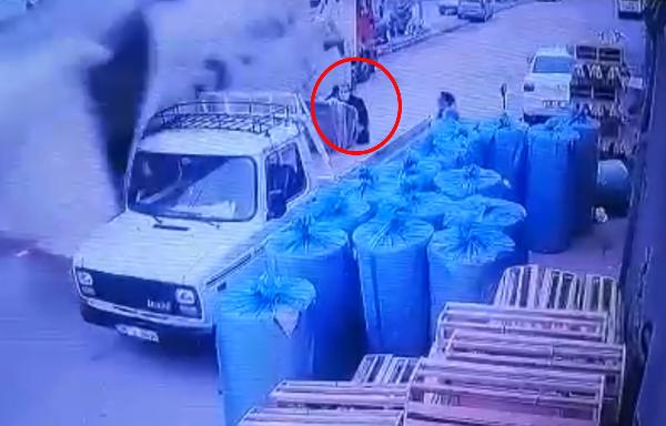 Kaza anı ise iş yerinin güvenlik kamerasınca kaydedildi. Polis, kaçan kamyonet sürücüsünü yakalamak için çalışma başlattı.