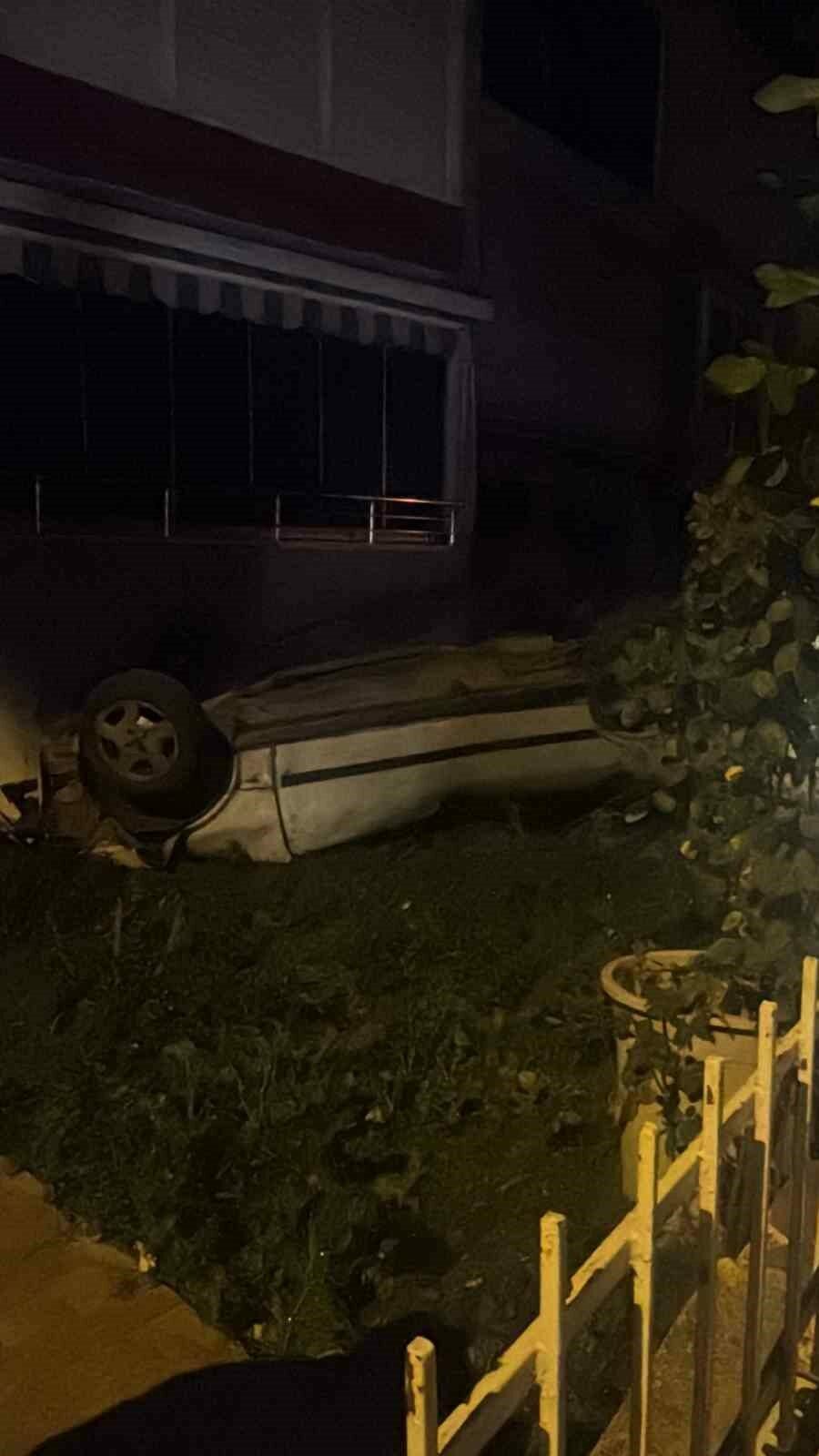 Kontrolden çıkan araç bir siteye ait beton korkuluklara aşıp takla attı.
