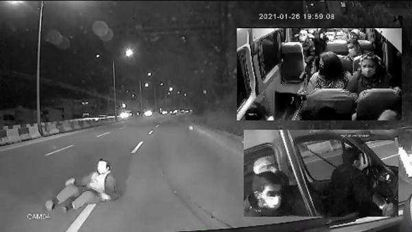Çarpmanın etkisiyle yola düşen yaya, şans eseri yara almadı. Kaza anı, saniye saniye minibüsün güvenlik kameralarına yansırken, yolcular büyük panik yaşadı.