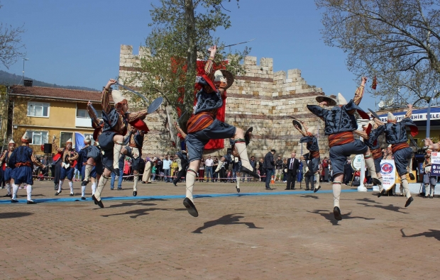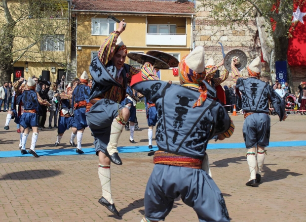 Şiirlerin de okunduğu kutlamalarda mehter takımı halkı coşturdu. Kılıç kalkan ekibinin gösterisi kutlamalara ayrı bir renk kattı.