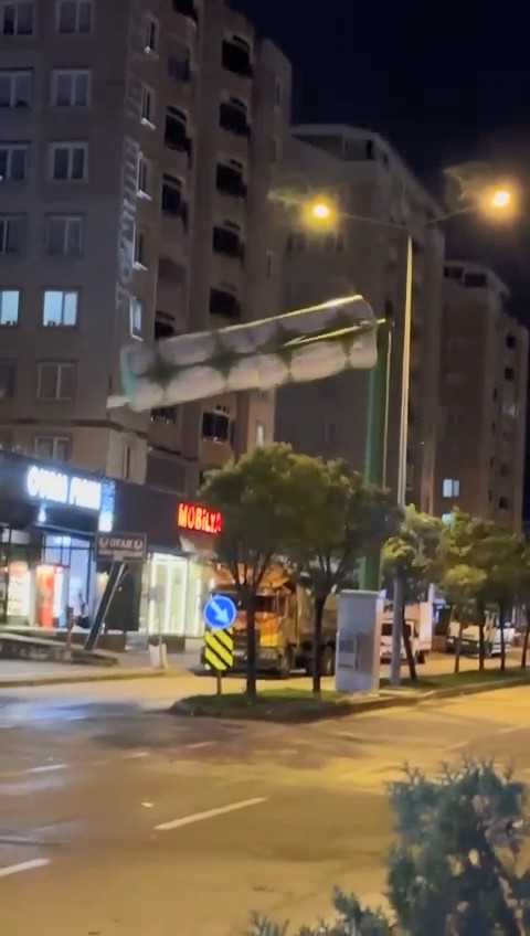 Kuvvetli rüzgarın etkisiyle elektrik direklerindeki tellerin birbirine sürtmesiyle kıvılcımlar etrafa saçıldı.
