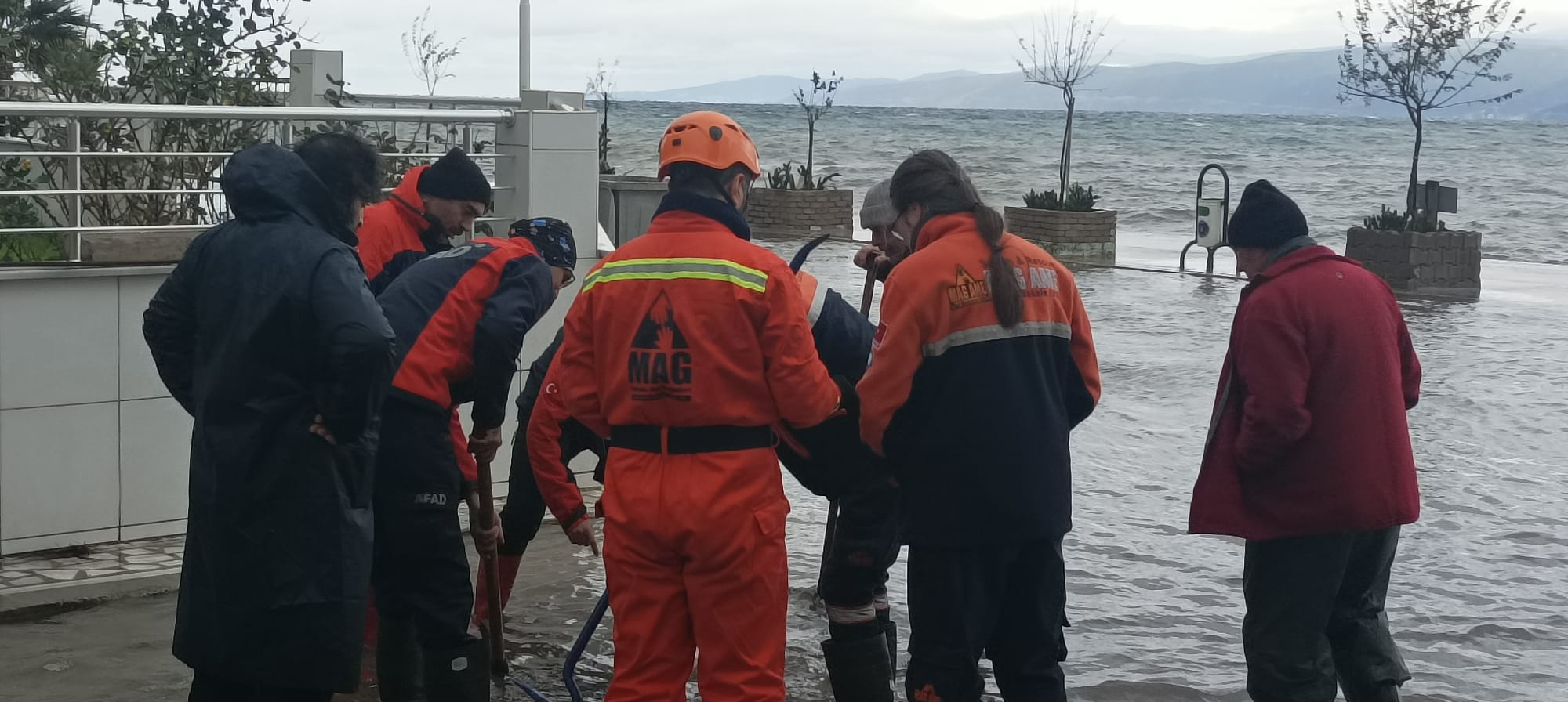 Alınan bilgiye göre, sabah saatlerinde etkili olan sağanak yağış Gemlik ilçesi Kurşunlu Sahili’nde denizin taşmasına sebep oldu.