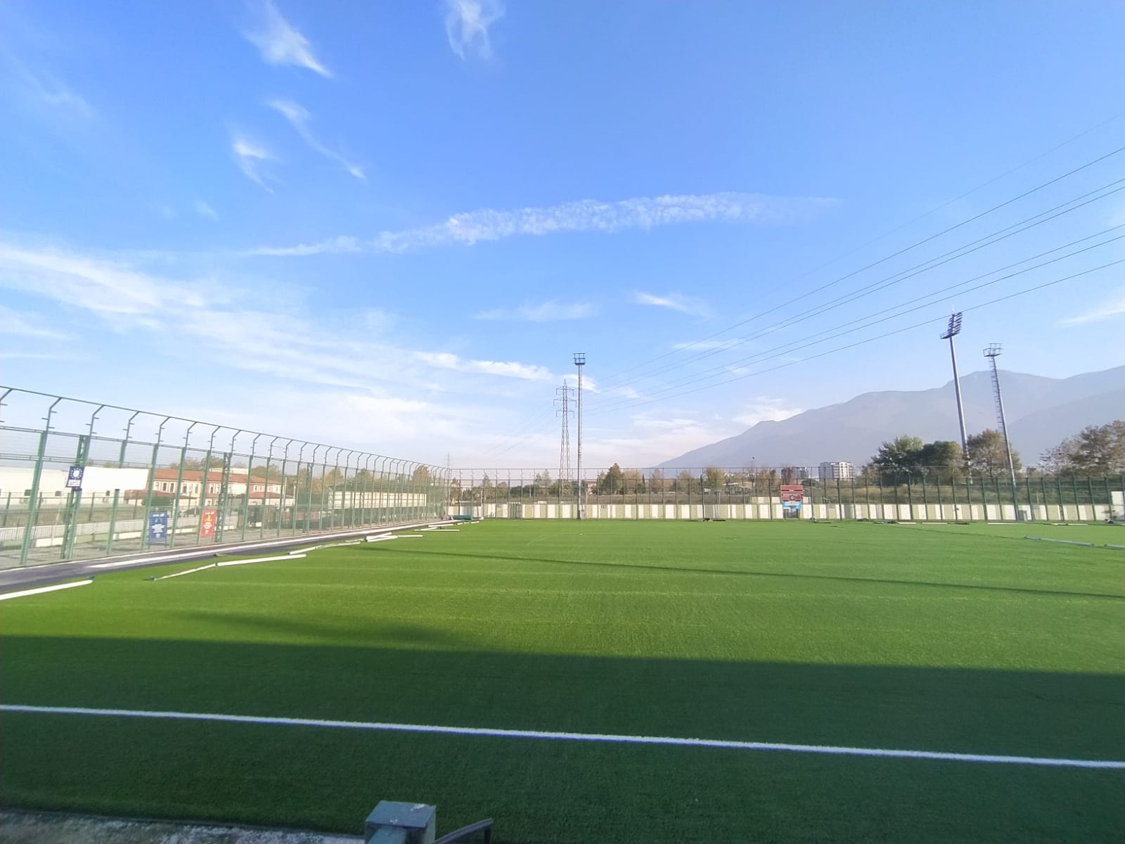 Çalışmaların aralıksız sürdüğü 105×68 metre ölçülerindeki sahanın mevcut zeminini kaldıran ekipler, altyapı malzemesi sermenin ardından zemini sentetik çimle kapladı.