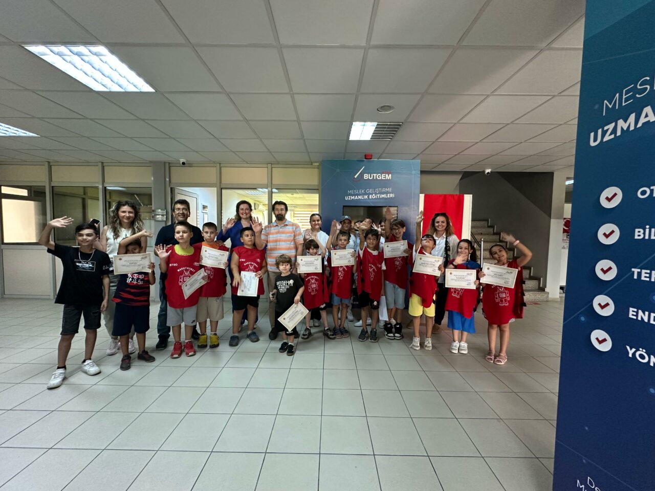 Ağustos ayının ilk haftasında başlayan ve dört dönem halinde gerçekleştirilen yaz kursları, bu yıl da yoğun ilgi gördü. BUTGEM’in 16 yıl içinde düzenlediği eğitimlerden bugüne kadar yaklaşık 3 bin çocuk faydalanırken, kursları tamamlayan tüm öğrencilere katılım belgesi verildi. Maket Robot Kursu’na katılan öğrenciler mekanik el becerilerini geliştirmenin yanı sıra temel programlama bilgisiyle tanışarak robotik dünyasına ilk adımlarını attı. Origami-Kâğıt Sanatları kursunda renkli kâğıtlarla çeşitli şekiller tasarlayan çocuklar, sabır ve dikkatlerini geliştirirken hayal güçlerini de kâğıda yansıttılar. Genç Mekanisyen eğitiminde ise ahşap parçalarla çalışan öğrenciler, kendi tasarımlarını ortaya çıkararak üretim ve parça motifleme deneyimi yaşadı.
