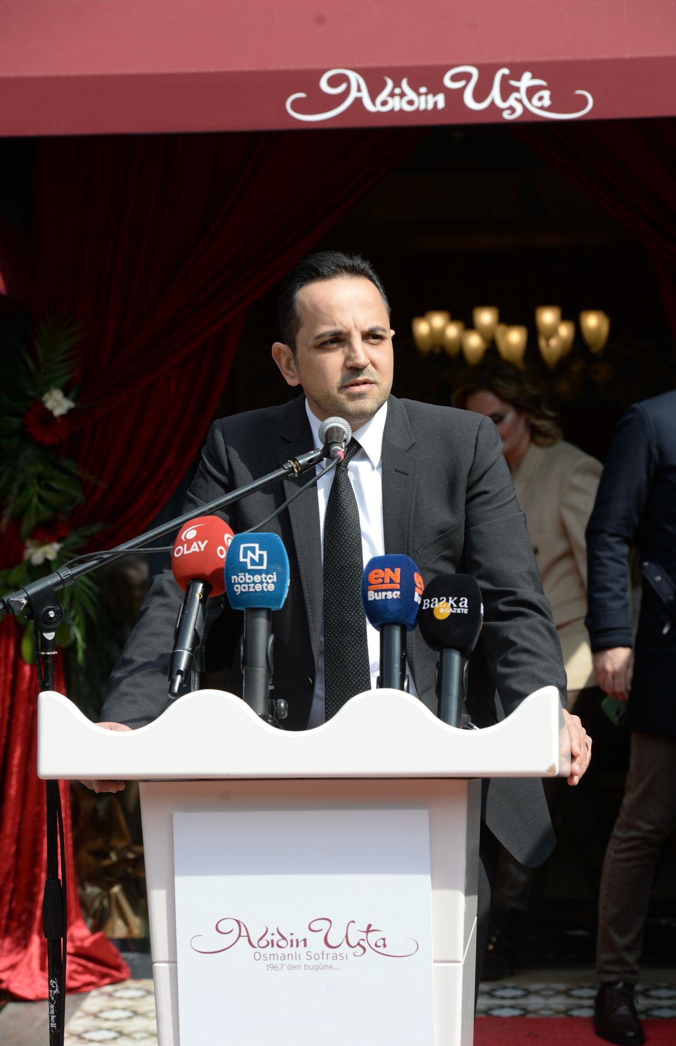 Abidin Usta Osmanlı Sofrası’nın kurucusu Abidin Özen’in hikayesi ve hayat nasihatlerini vurguladığı konuşmasında, “Abidin Usta’nın hikayesi, 1958’de Kosova’dan göçle başlayan bir hayat mücadelesi ve gece gündüz demeden çalışma ile gayretin hikayesidir” ifadelerini kullanan AK Parti Bursa Milletvekili Refik Özen; “Büyüklerimiz Abidin ve Kamil Özen’in bize bıraktıkları en önemli miras onurları ve isimleriydi. Bizler de onlardan sonra gelen kuşaklar olarak, bu değeri daha yukarılara çıkarmak için gayret ediyoruz” şeklinde konuştu.