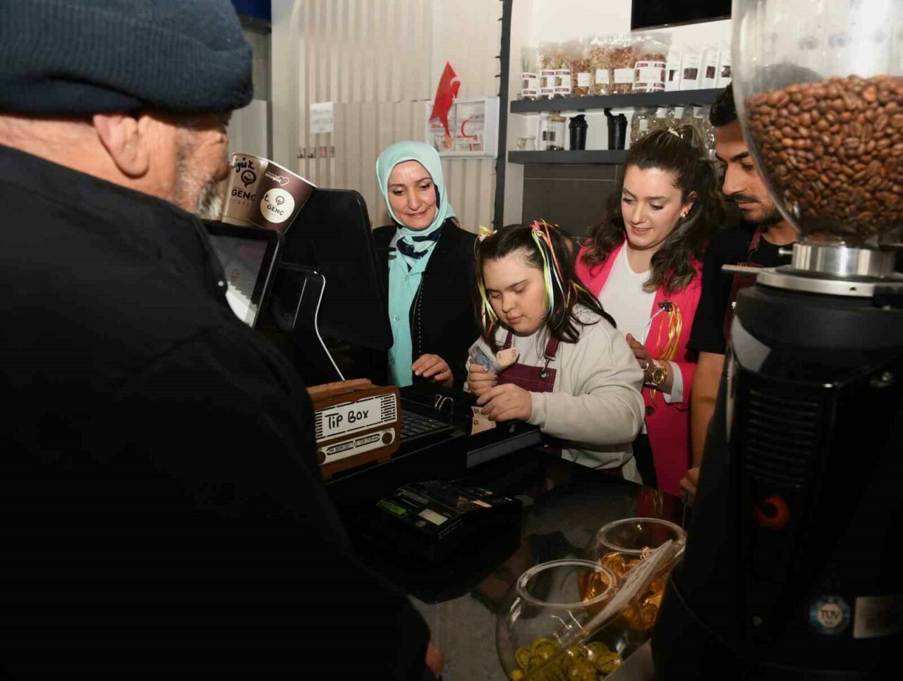 Başkan Aydın da etkinliğe katılarak downsendromlu bireylere yardım etti. Genç Kafe’ye gelen müşteriler kahvelerinin engelli bireyler tarafından hazırlanıp sunulmasından büyük mutluluk duydu. İl kez bir kafede çalışma deneyimi yaşayan downsendromlu bireylerin mutluluğu yüzünden okundu.