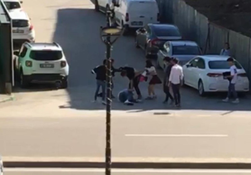 Tartışma kısa sürede kavgaya dönüşürken, birbirlerine acımadan vuran gençlerin kavgası çevredekilerin araya girmesiyle son buldu. Bu anlar anbean kameralara yansıdı.