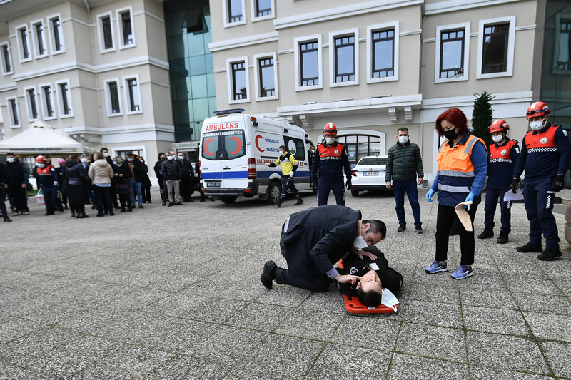 Tatbikat öncesinde Sivil Savunma ekiplerince çalışanlara, yangın ve deprem esnasında yapılacaklar ile ilk yardım ve acil tahliye konularında bilgi verildi. Bilgilendirmenin ardından siren sesleriyle birlikte belediye personeli binayı boşaltmaya başladı. Senaryo gereği deprem anında binada yaralananlar, kurtarma ve sağlık ekiplerince müdahalelerinin ardından binadan çıkarıldı.