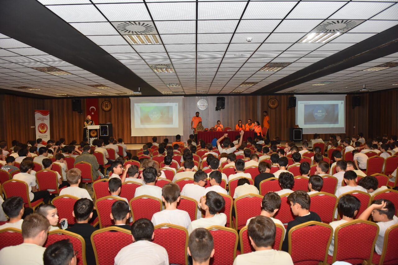 Bursa Merkez Anadolu İmam Hatip Lisesi ve İmam Hatip Ortaokulu’nu ziyaret eden Yıldırım Belediyesi Afet İşleri Müdürlüğü personeli, öğrencilere hem afet farkındalık eğitimi verdi hem de acil durum tahliye tatbikatı gerçekleştirdi.