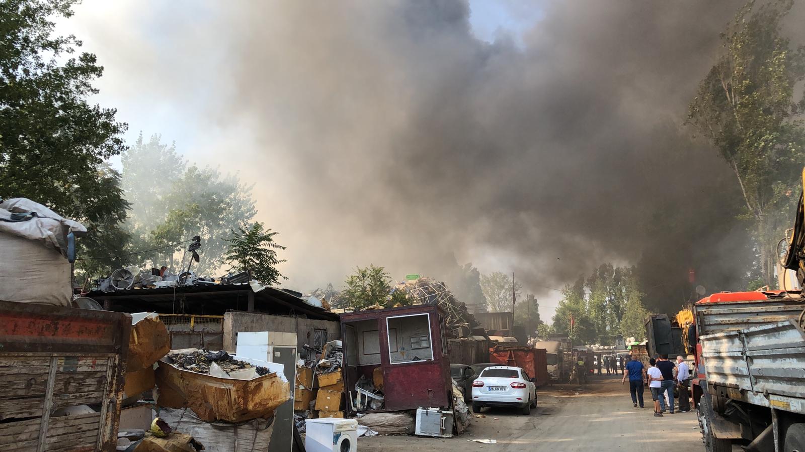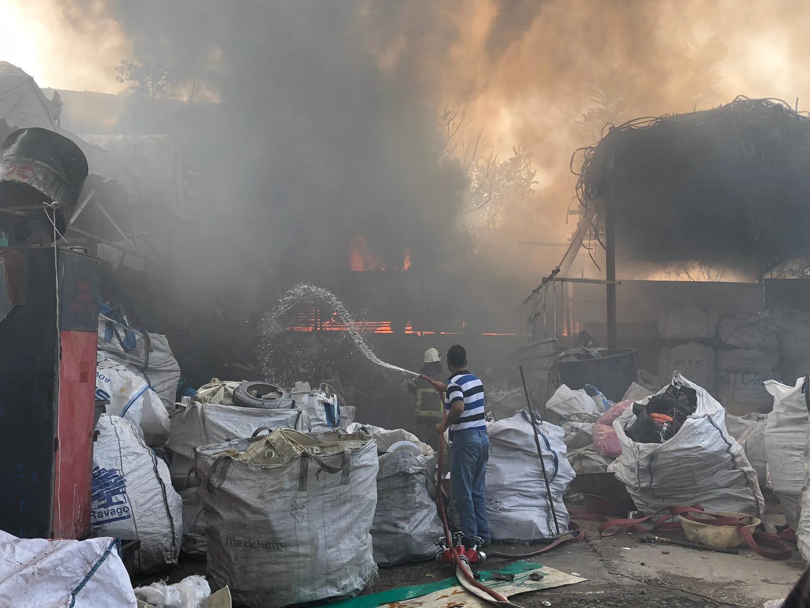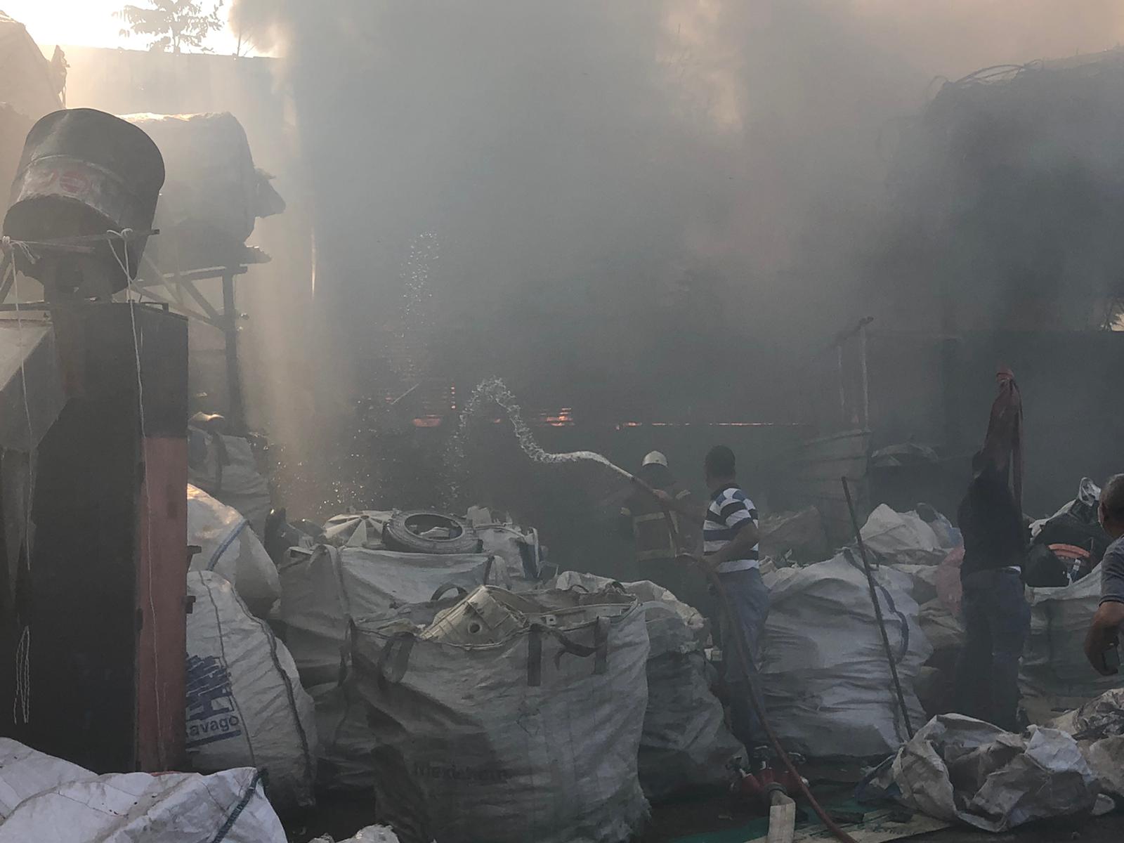 Veysel Karani Mahallesi’nde bulunan bir hurda deposunun bahçe kısmında bulunan atıklar henüz bilinmeyen bir nedenden tutuştu.