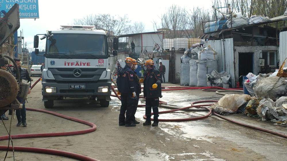 Osmangazi ilçesi Veysel Karani Mahallesi’ndeki Osmangazi Geri Dönüşümcüler ve Hurdacılar Sitesi’ndeki tesiste henüz bilinmeyen nedenle yangın çıktı.