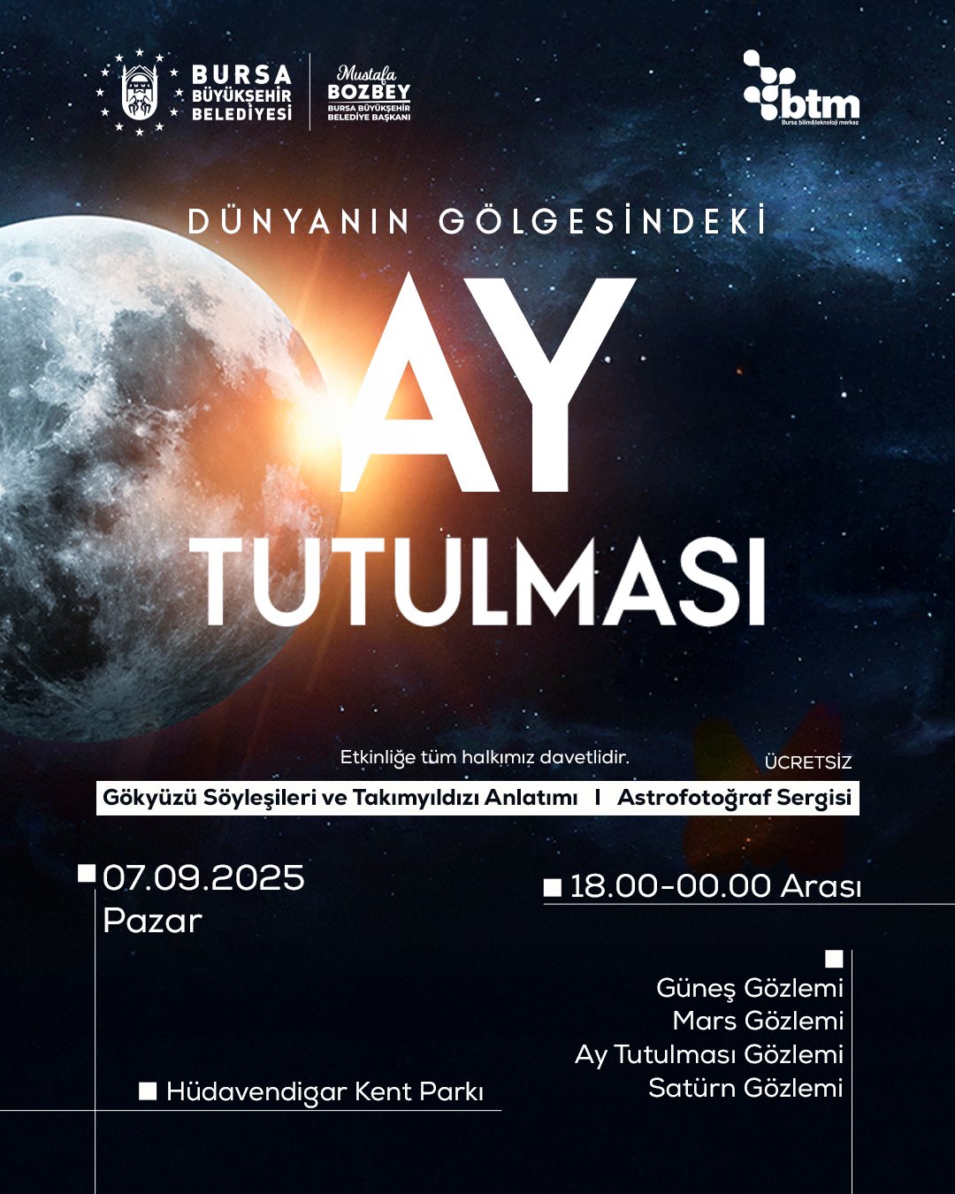 Pazar akşamı gerçekleşecek ay tutulması, Hüdavendigar Kent Parkı’nda düzenlenecek özel programla Bursalılarla birlikte izlenecek.