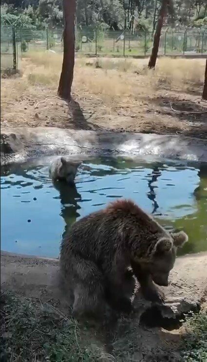 Milli Parklar Genel Müdürlüğü’nün sosyal medya hesaplarında paylaşılan görüntülerde, ayıların neşeli halleri dikkat çekti. İzleyenlere tebessüm ettiren karelerde ayıların suya girip oynadığı, güneşin altında dinlendiği anlar yer aldı.