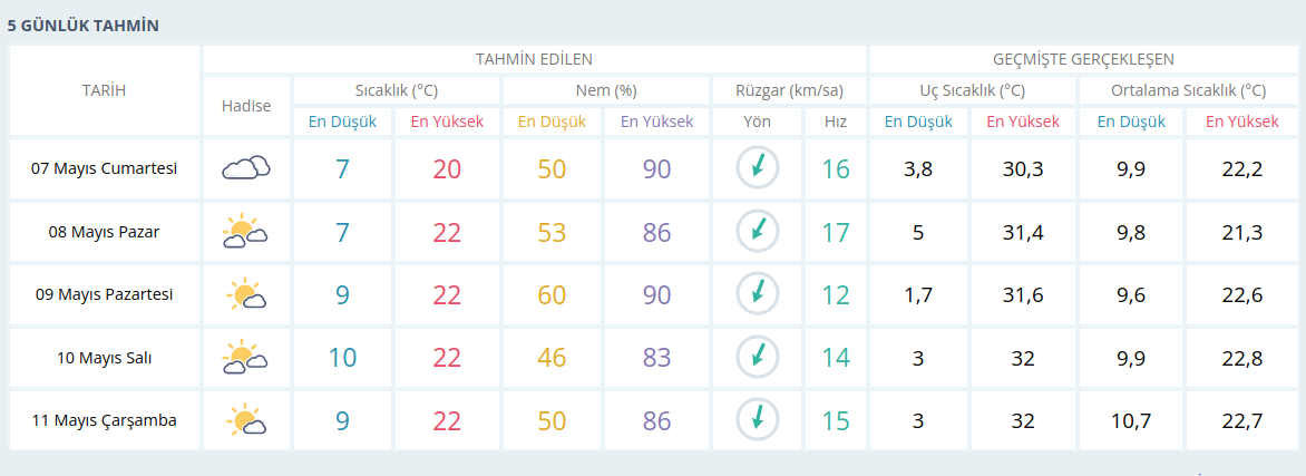 Haftalık Hava Tahmini (7 – 13 Mayıs 2022)
