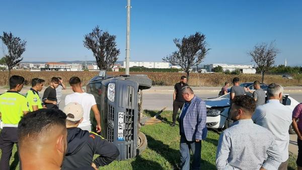 İnegöl’den Alanyurt’a giden Adem K. yönetimindeki 16 AUU 343 plakalı otomobil, ara sokaktan yola çıkan Süleyman Ç.’nin kullandığı 16 KPC 22 plakalı hafif ticari araca yandan çarptı. Çarpmanın etkisiyle sürüklenen hafif ticari araç, refüje çarparak yan yattı. İhbarla kaza yerine polis ekipleri sevk edildi. Ekipler, ehliyetsiz olduğu belirlenen Süleyman Ç.’ye ‘ehliyetsiz araç kullanmak’tan 3 bin 674 TL ceza uyguladı.