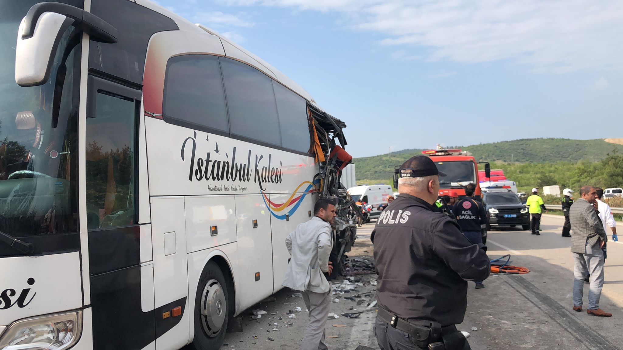 Alınan bilgiye göre, kaza 16.00 sıralarında Bursa Ankara otobanı Demirtaş Viyadüğü yakınlarında meydana geldi. Sürücüsünün kimliği tespit edilemeyen 16 JZD plakalı hafriyat kamyonu Ankara istikametine seyir halindeyken önündeki 24 ZSZ plakalı yolcu otobüsüne arkadan çarptı. Otobüsün arka kısmında bulunan bir yolcu hayatını kaybetti, 6 yolcu da yaralandı.