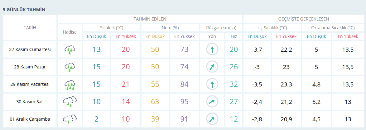 Bursa için önümüzdeki 5 günlük hava tahmin raporu şöyle;