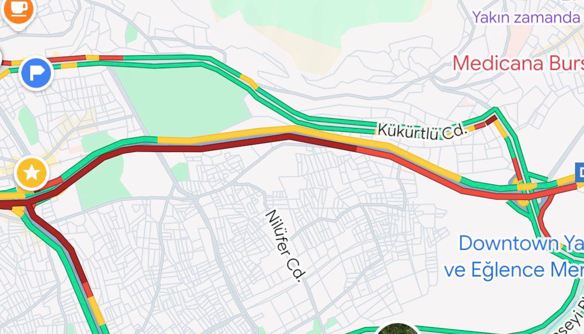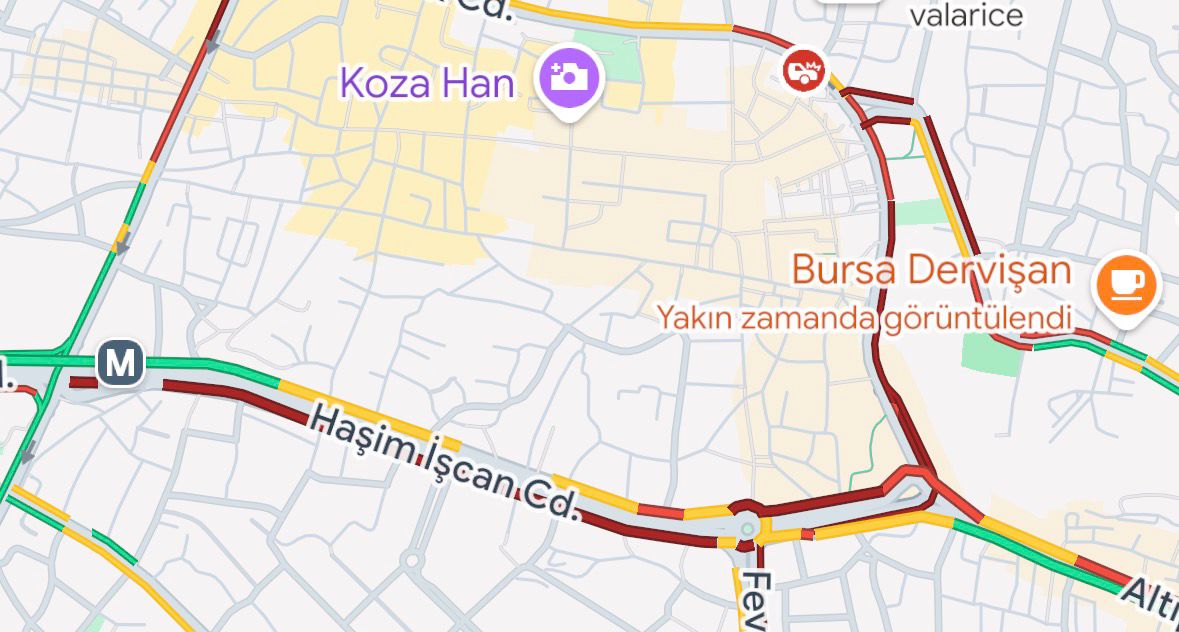 Kentin ana geçiş noktalarından Acemler Kavşağı, öğle saatlerinde tam anlamıyla kilitlendi. Hem şehir içi hem şehirler arası geçişlerde uzun araç kuyrukları oluştu. Çekirge Caddesi ve Osmangazi Caddesi boyunca da yoğunluk devam ediyor. Sürücüler alternatif güzergâh arayışında ancak yan yollar da dolu.