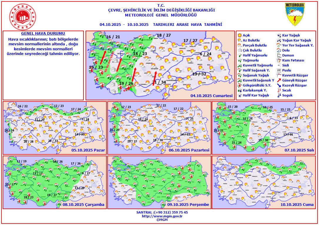 Meteoroloji genel Müdürlüğü, hava tahmin raporunu güncelledi.