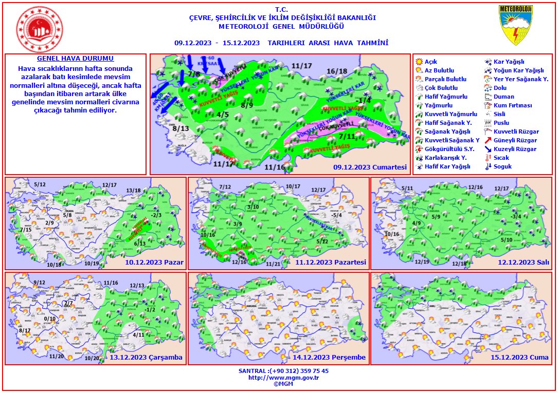 Türkiye geneli için haftalık hava durumu tahminleri:
