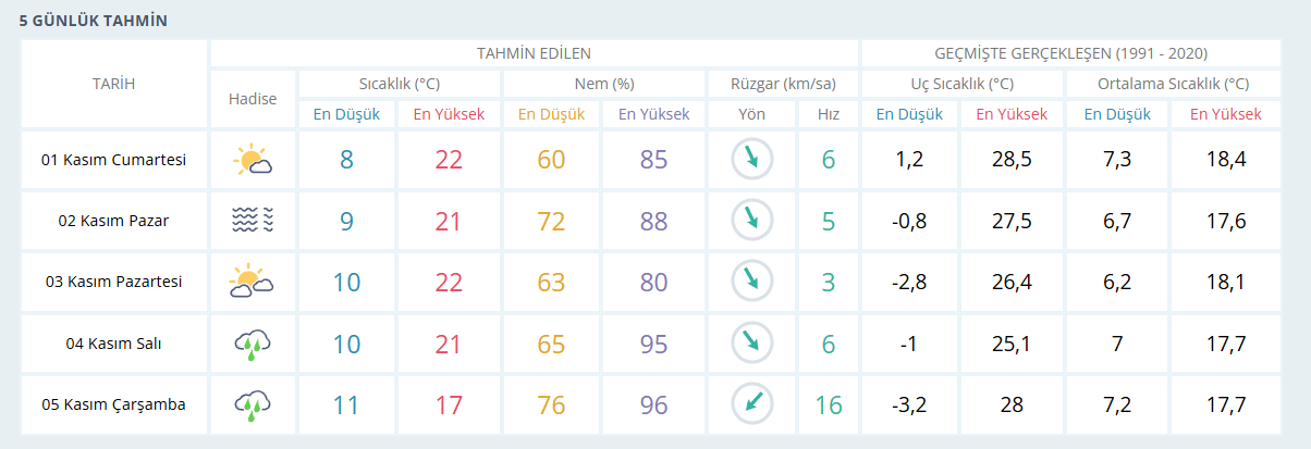 İşte Meteoroloji Genel Müdürlüğü’nün Bursa için 5 günlük yayınladığı hava tahmin raporu: