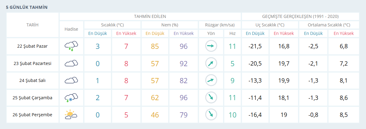 İşte Meteoroloji Genel Müdürlüğü’nün Bursa için 5 günlük hava durumu tahmin raporu: