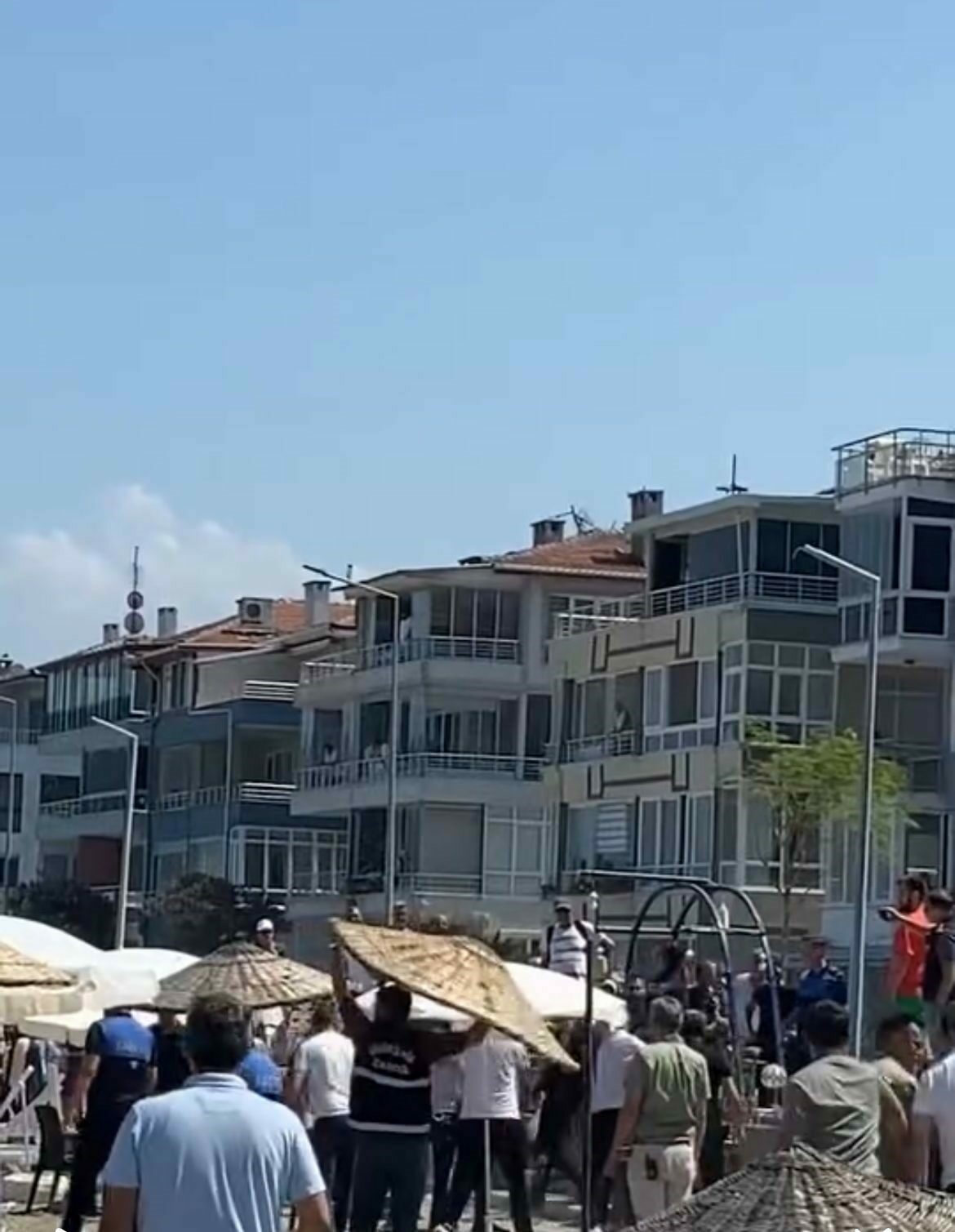 Olay, Mudanya ilçesinde bulunan halk plajında meydana geldi. Vatandaşlardan izinsiz şekilde şezlong ve şemsiye ücreti talep ettiği tespit edilen işletmeye zabıta ekipleri baskın düzenledi. Baskında şezlonglardan para toplayan kişiler ile zabıta ekipleri arasında tartışma çıktı. Kısa sürede büyüyen tartışma kavgaya dönüştü. Çevredekilerin cep telefonu kamerasına da yansıyan görüntülerde, tarafların birbirine tekme ve yumruklarla saldırdığı anlar yer aldı. Polis ekiplerinin araya girmesiyle kavga sonlandırılırken, olayla ilgili inceleme başlatıldı.