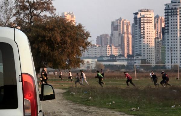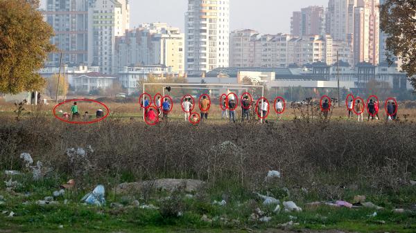 Maske ve sosyal mesafe kurallarını da hiçe sayan kalabalık grubun maç yaptığı anlar ise kamerayla anbean görüntülendi.