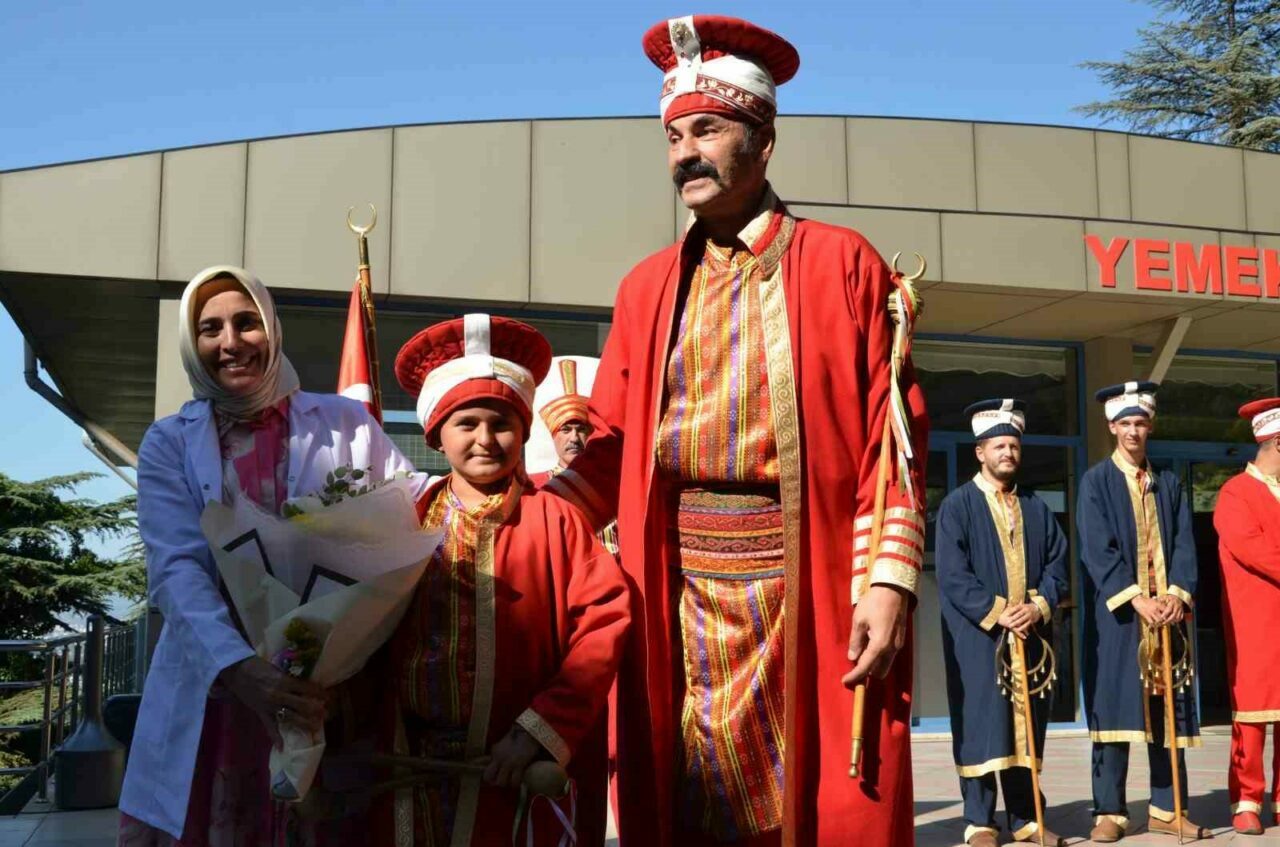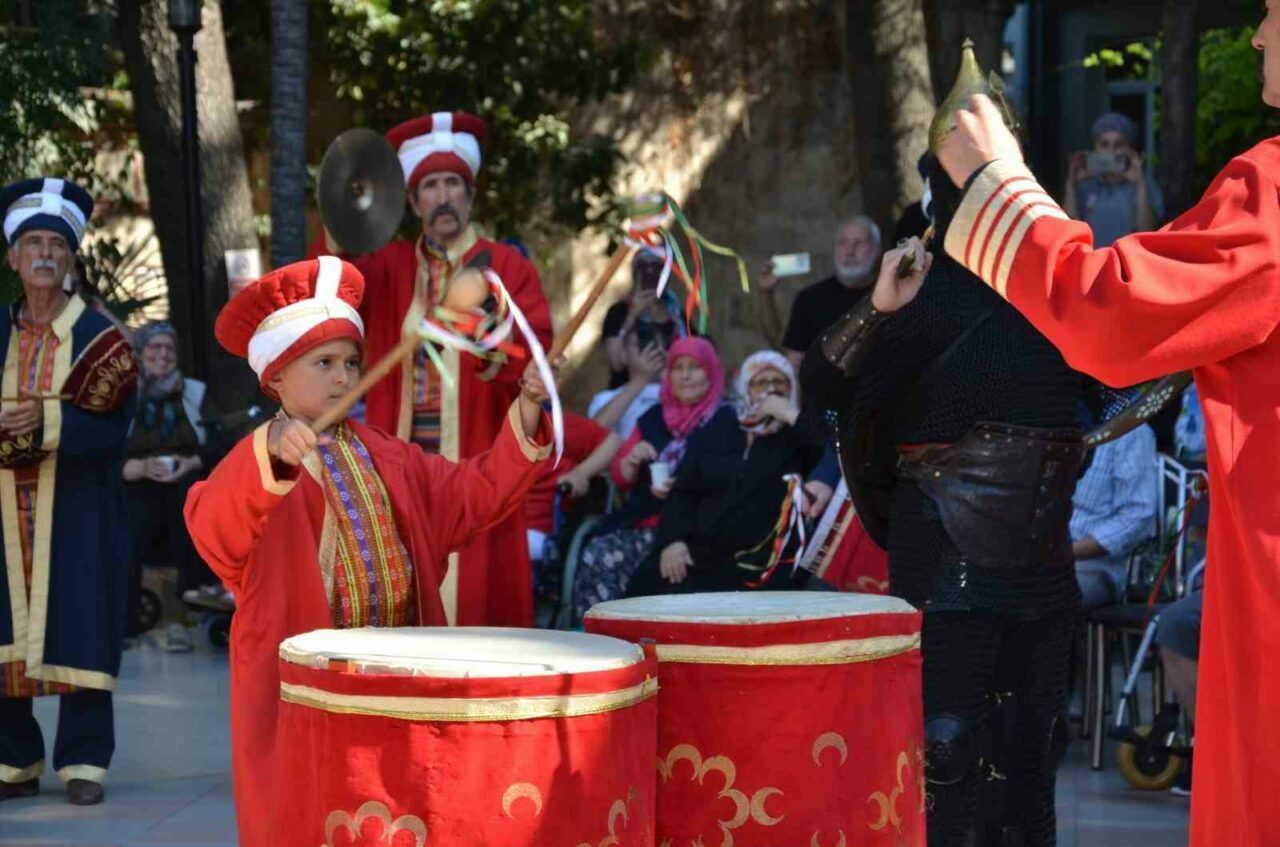 Hastaneye gelen mehter takımı, bahçede hastalara moral konseri gerçekleştirdi.