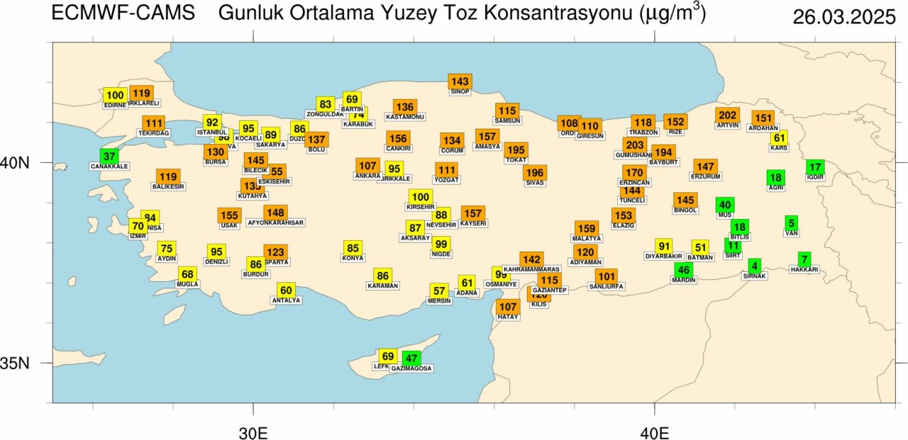 Deniz seviyesinden 1013 milibarın üstünde ölçülen yüksek basınç değerlerine, çöl tozlarının eklenmesi hava kalitesinde dalgalanmalara neden oluyor.