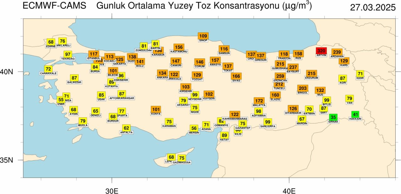 TOZ TAŞINIMI YARIN HASSAS SEVİYEYE ÇIKACAK