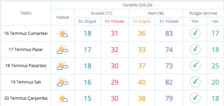 BURSA 5 GÜNLÜK TAHMİN