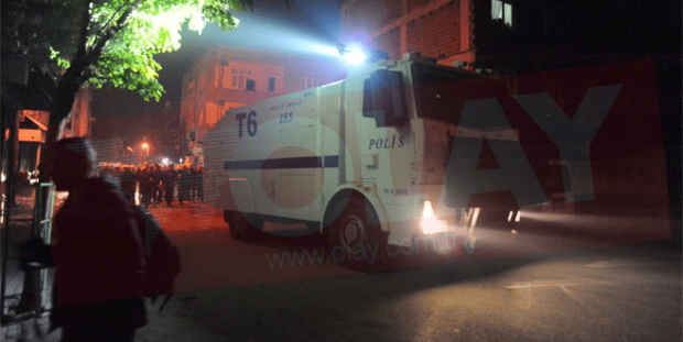 Öte yandan bir şüpheli apartmanın çatısından çevik kuvvet ekiplerinin üzerine tuğla ve mermer fırlattı.
