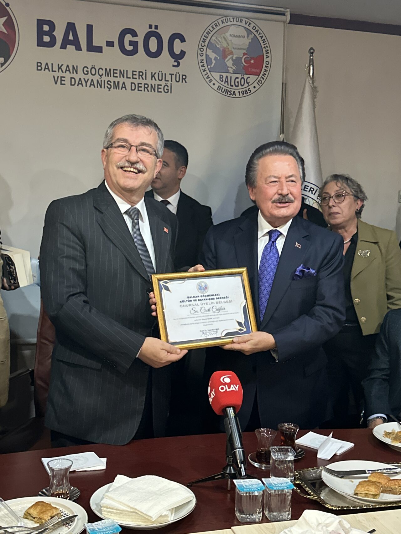 Bakan Çağlar, hayatının kırılma anlarına ilişkin dinleyenlere ilk kez duydukları bilgiler de verdi. Suyun öte yakasından gelip, Türkiye’de nasıl saygın bir sanayici, siyasetçi, spor adamı olduğunu anlattı. Balkan insanını övdü. BALGÖÇ Genel Başkanı Prof. Dr. Emin Balkan da Bakan Çağlar’ın kendileri için önemine işaret etti. Yönetim Kurulu kararıyla hemşehrileri Çağlar’ı, ‘Onursal Üye’ yaptıklarını açıkladı. Buna ilişkin belgeyi de Bakan Çağlar’a sundu. Çağlar’a burada ayrıca BALGÖÇ Kadın Kollarınca hazırlanan, Atatürk’ün Sofya Büyükelçiliği’nde yeniçeri kıyafetiyle çekilmiş fotoğrafının yer aldığı özel bir tablo da hediye edildi.