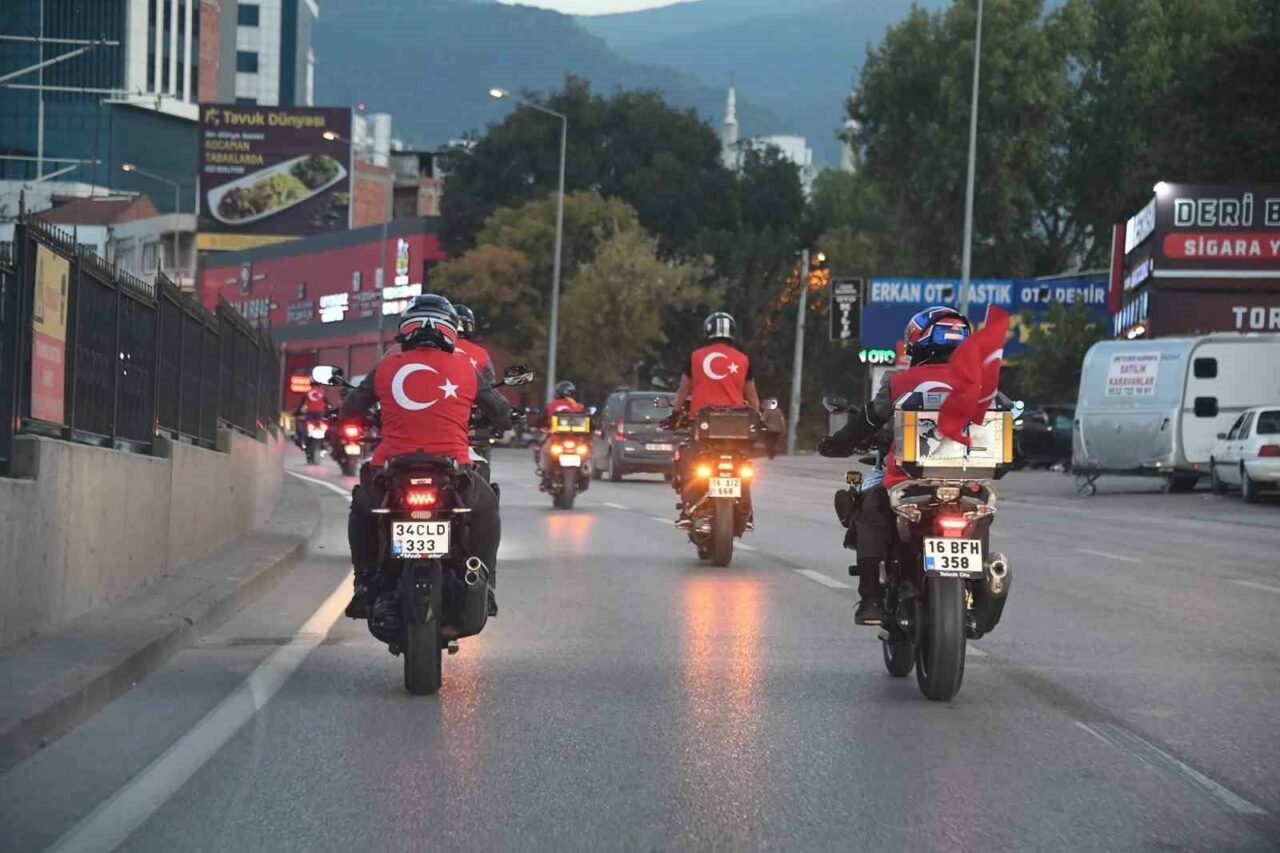 Anma törenlerinin ardından Başkan Erkan Aydın, Bursa Motosiklet Spor Kulübü’nün 50 motosikletten oluşan kortejinin startını verdi. Ahmetbey ve Çağlayan mahallelerinden yola çıkan motosikletliler, Panorama 1326 Bursa Fetih Müzesi’ne hareket etti. Burada korteji Mehter Takımı karşılarken, etkinlik renkli görüntülerle sona erdi.