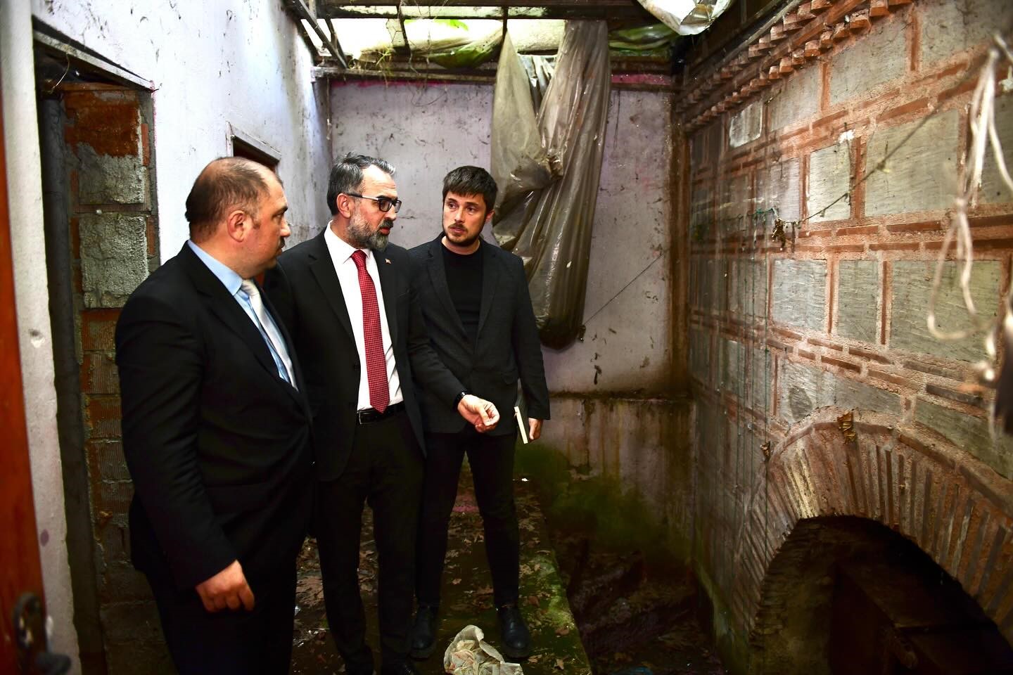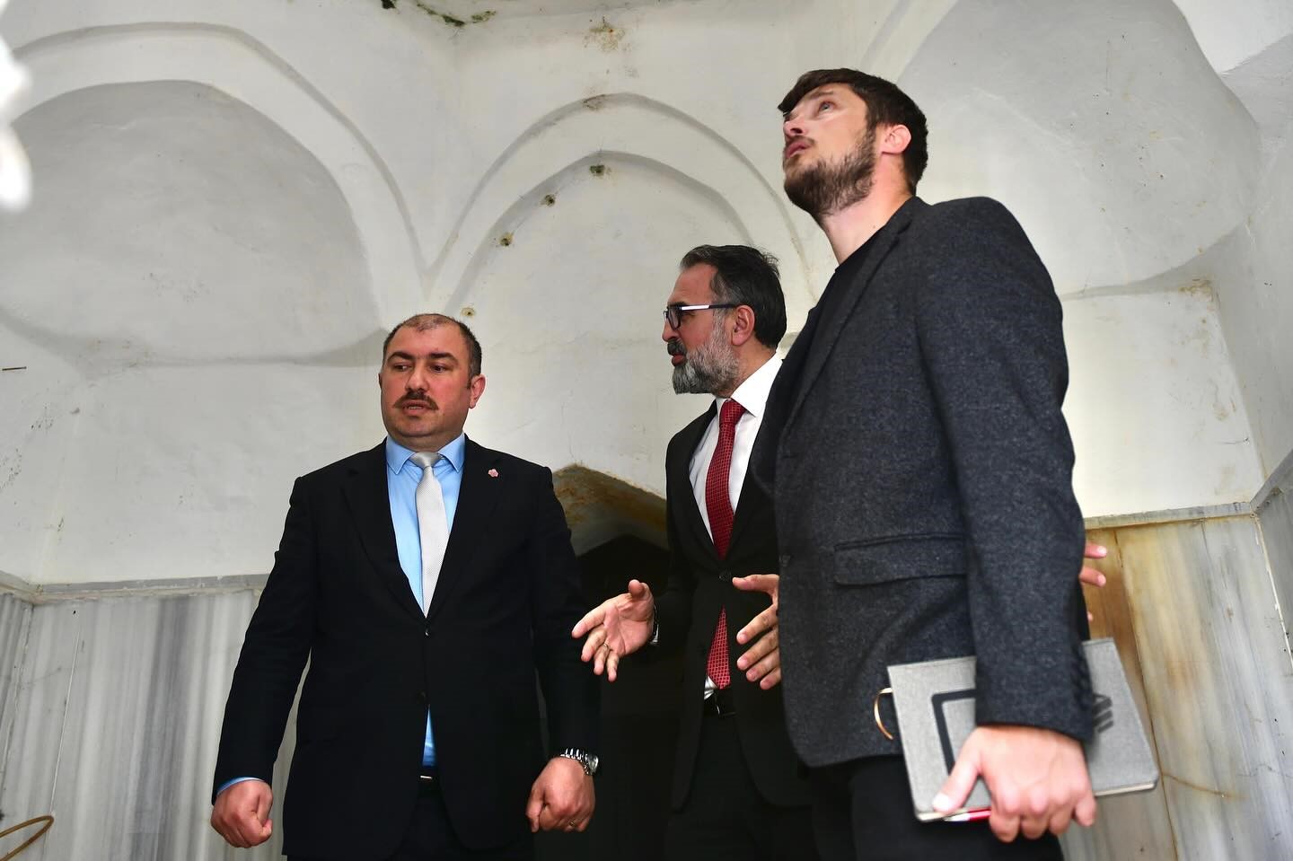 Kestel Belediye Başkanı Ferhat Erol ve Bursa Vakıflar Bölge Müdürü Dr. Haluk Yıldız, tarihi Kestel Hamamı’nda incelemelerde bulundu.