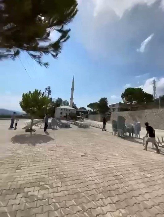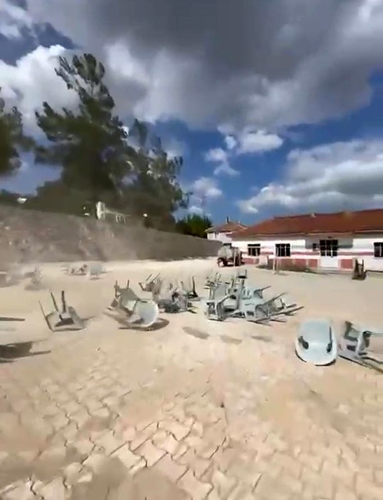 İlçe meydanında çıkan hortum etkinlik için meydana dizilen sandalyeleri havada uçuştururken, bir süre sonra gözden kayboldu.