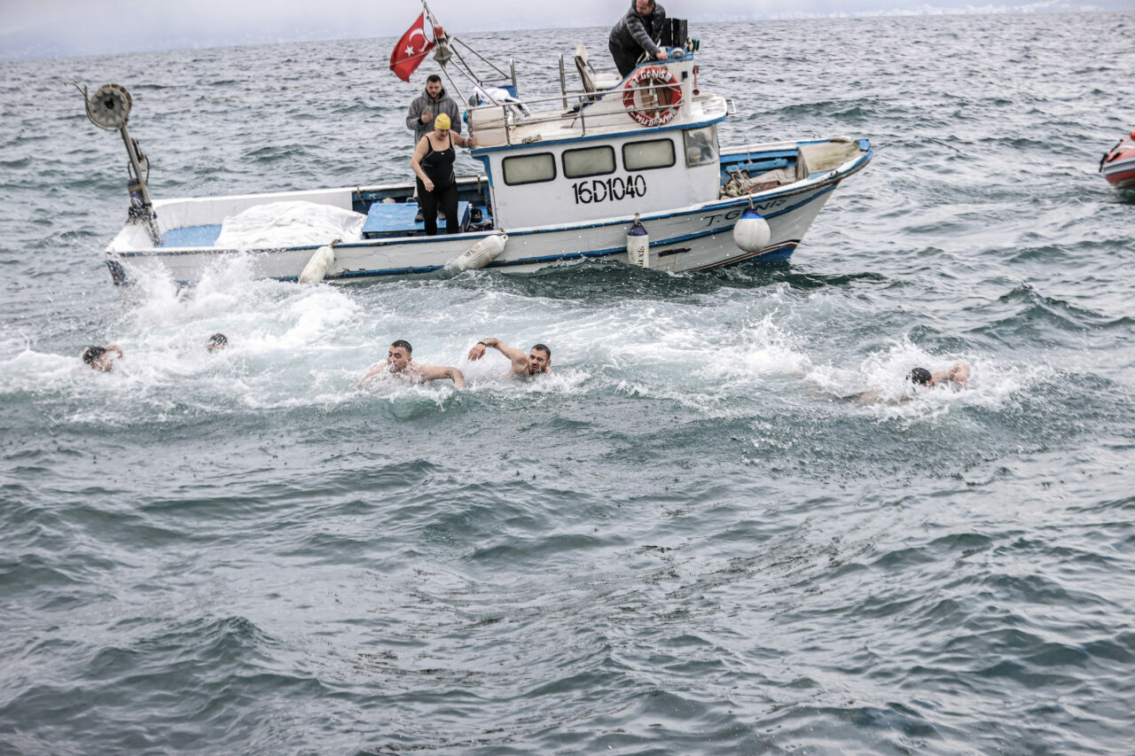 Metropolit Maksimos’un kurdeleye bağlı suya attığı haç için tekneden 6 kişi soğuk ve dalgalı denize atladı. Denize atlayanların ulaştığı haç, daha sonra metropolit tarafından yeniden karaya çekildi.