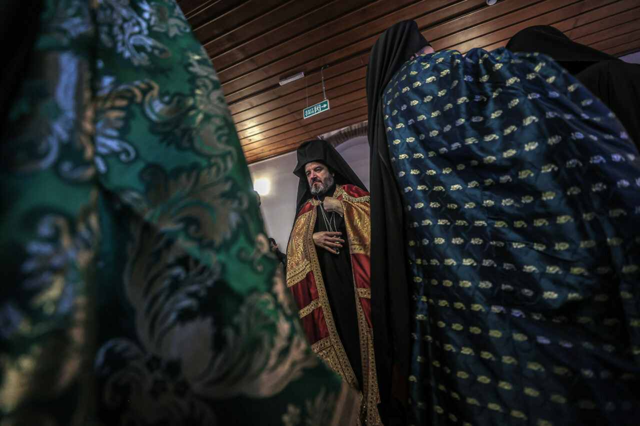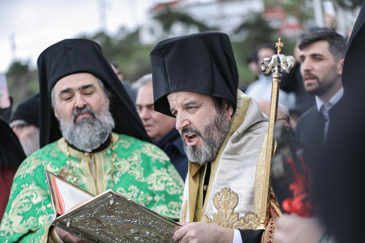 Yaklaşık 4 saat süren ayinin ardından Maksimos Vgenopulos ve ayine katılanlar kortej halinde Tirilye sahiline yürüdü.