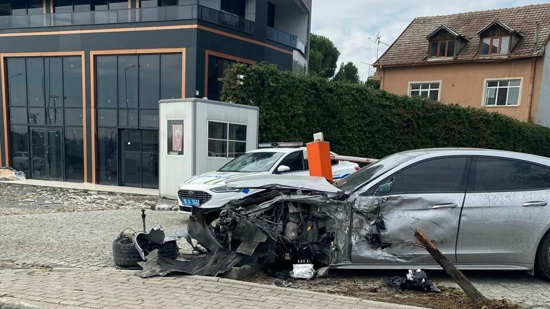 Şiddetli çarpmanın etkisiyle her iki araç metrelerce sürüklendikten sonra otopark bariyerlerine çarparak durdu. Kazada hurdaya dönen otomobildeki K.E., kazayı hafif sıyrıklarla atlattı.