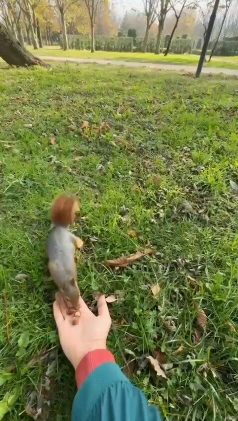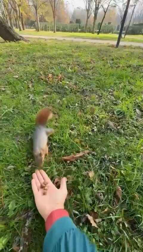 Reşat Oyal Kültür Parkı gezen bir vatandaş, parkta gezerken sincap ile karşılaştı. Sincabın ürküp kaçmadığını gören vatandaş, yanında bulunan fındığı hayvanla paylaştı. Fındığı sincap ile paylaştığı o anları cep telefonu ile kayıt altına aldı. Fındıkları alan sincap, ağaca tırmanıp gözden kayboldu.