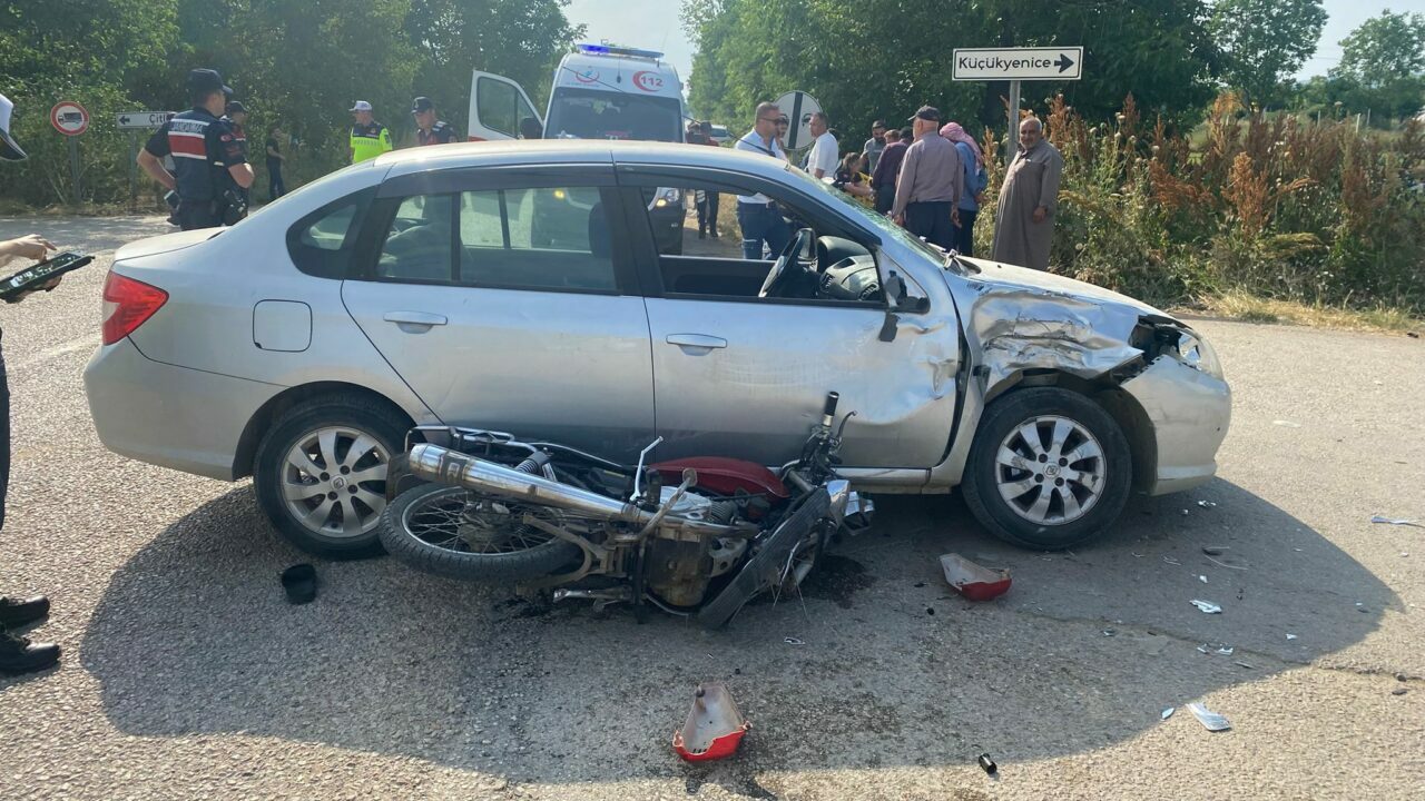 Kaza, dün saat 17.00 sıralarında Kurşunlu Mahallesi’nde meydana geldi. Yiğit K.’nın kullandığı 33 NJN 43 plakalı motosiklet, Küçük Yenice Mahallesi’ne dönüş yapan Kenan C. (70) yönetimindeki 16 KHA 27 plakalı otomobile yandan çarptı.
