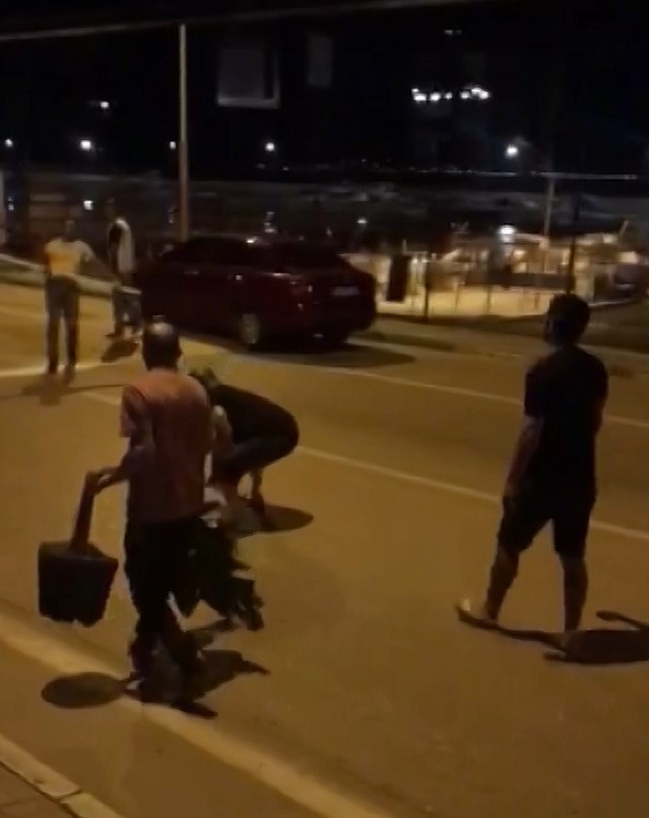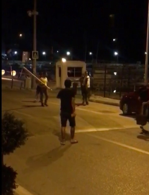 Bir kişinin site giriş bariyeri ile diğerlerine vurmaya çalışması, diğer kişinin ise bir kafeteryanın bahçesindeN aldığı muz ağacı ile saldırdığı görüntüler güvenlik ve cep telefonu kameralarına yansıdı.