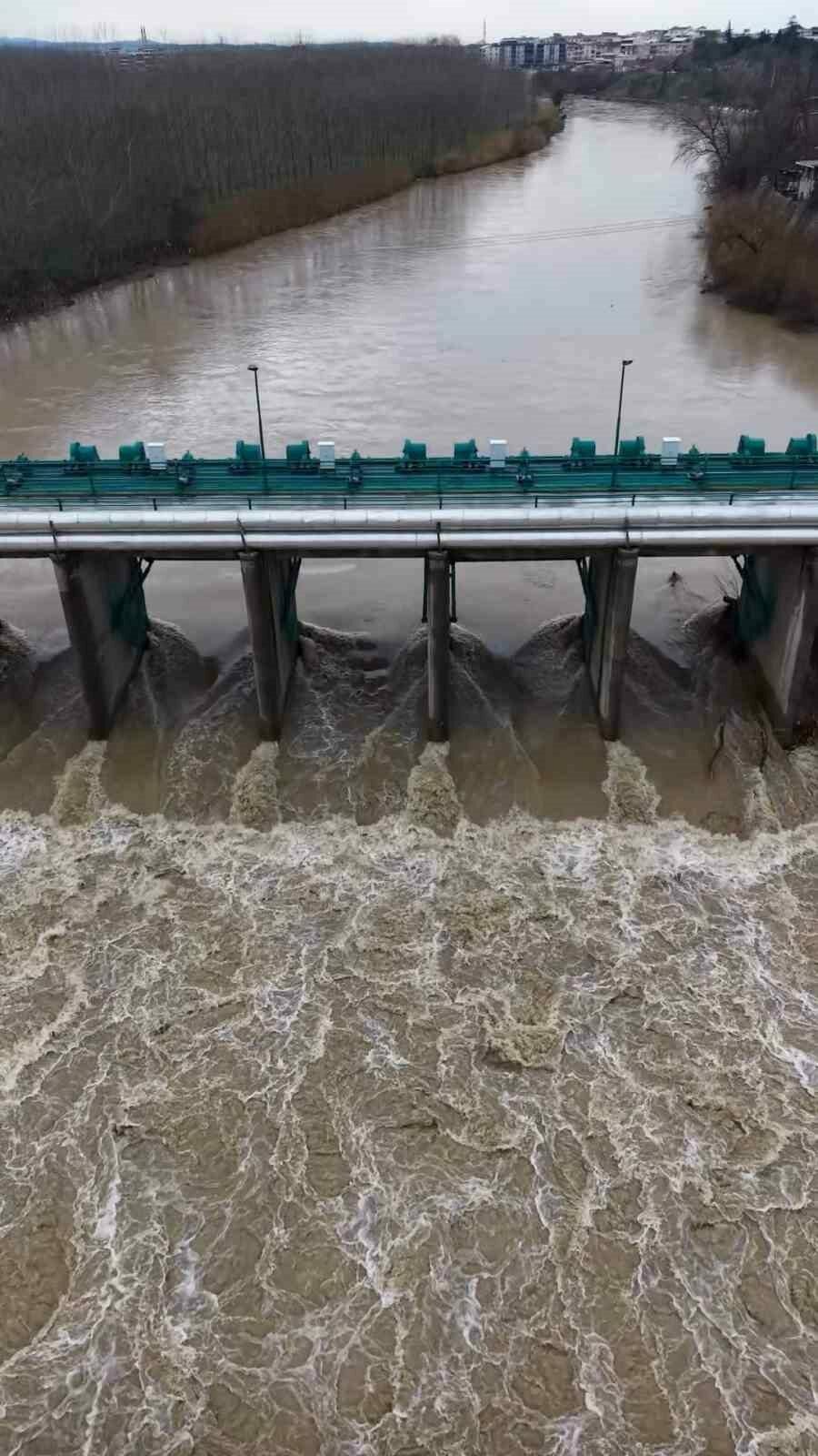 Dronla kaydedilen görüntülerde, çaydaki su seviyesinin normalin üzerine çıktığı ve akış hızının belirgin şekilde arttığı görüldü.