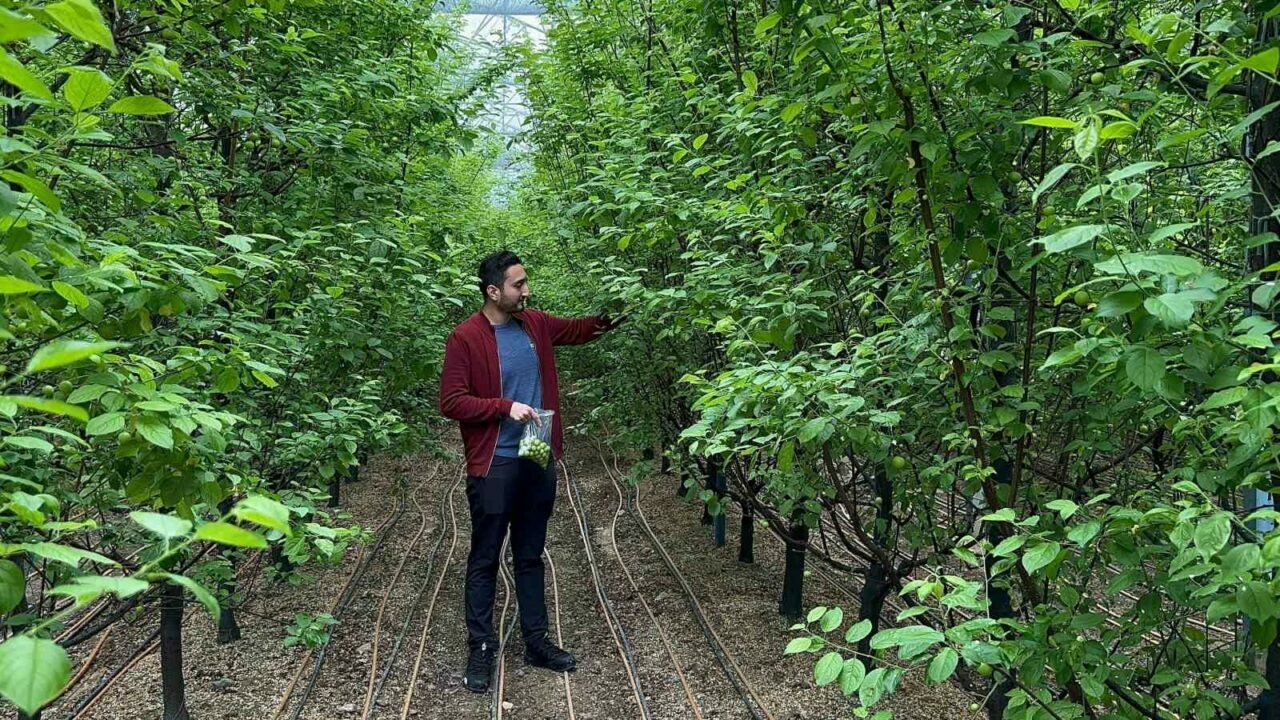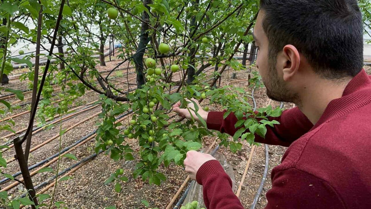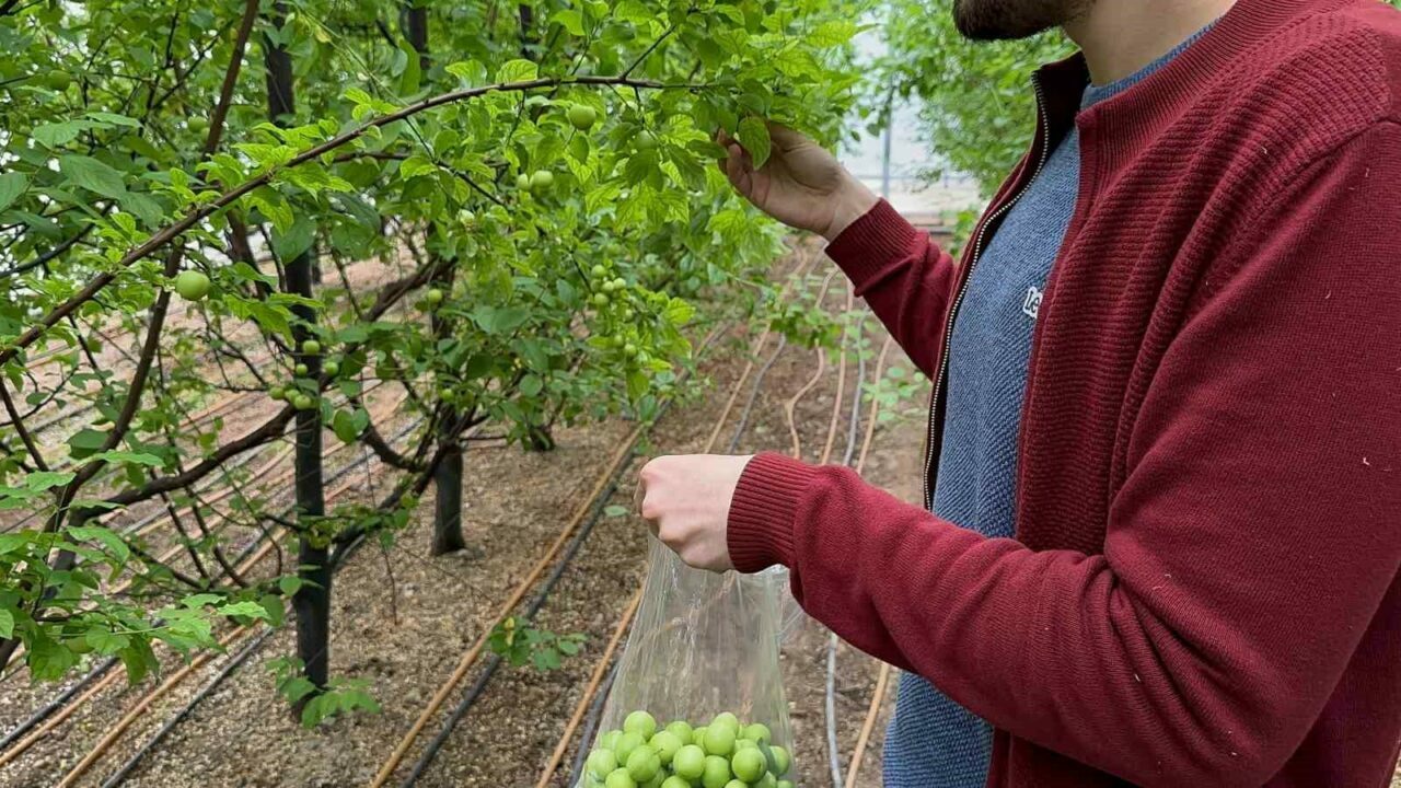 Bursa’nın İznik ilçesinde 26 yaşındaki ziraat mühendisi Mustafa Kutay Ası, içinde 300 adet erik ağacı bulanan 800 metrekarelik akıllı serasında kış ayında yeşil erik yetiştiriyor.